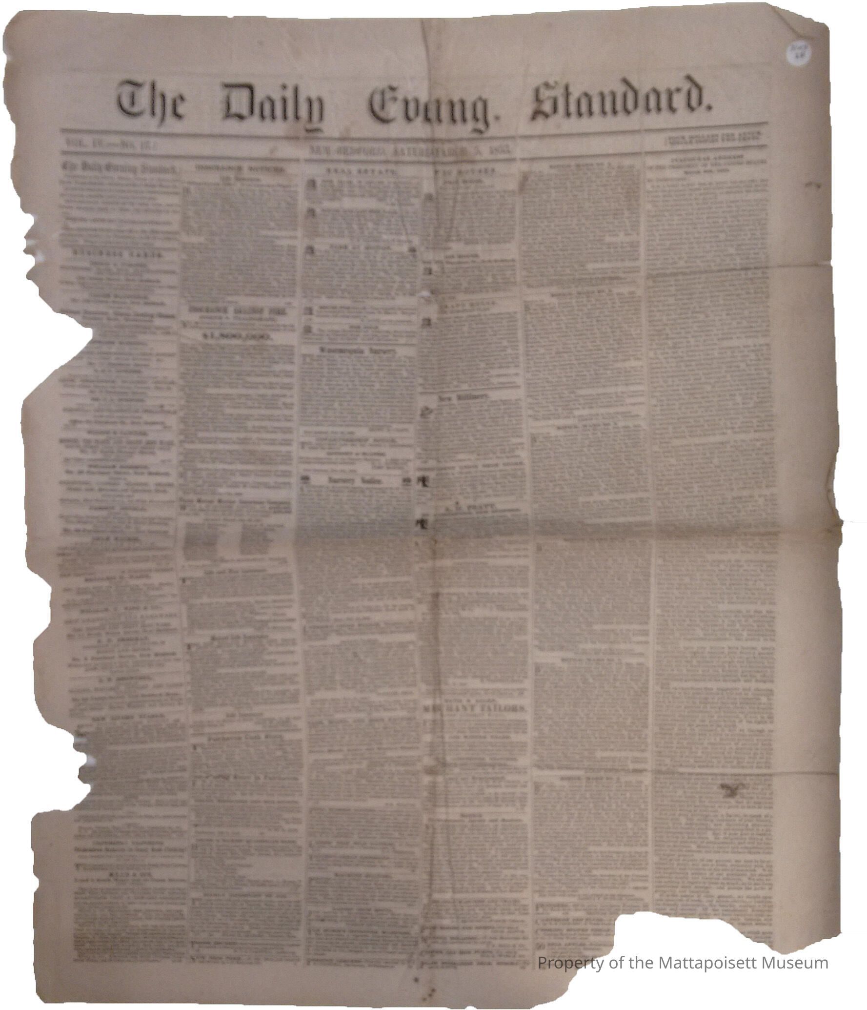 The Daily Evening Standard. Vol. IV, No. 17. New Bedford, Saturday, March 5, 1853.Collection