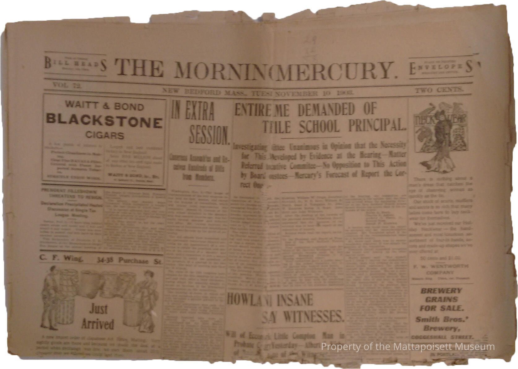 The Morning Mercury. Vol. 72. New Bedford, Mass, Tuesday, November 10,1903. Very brittle.Collection