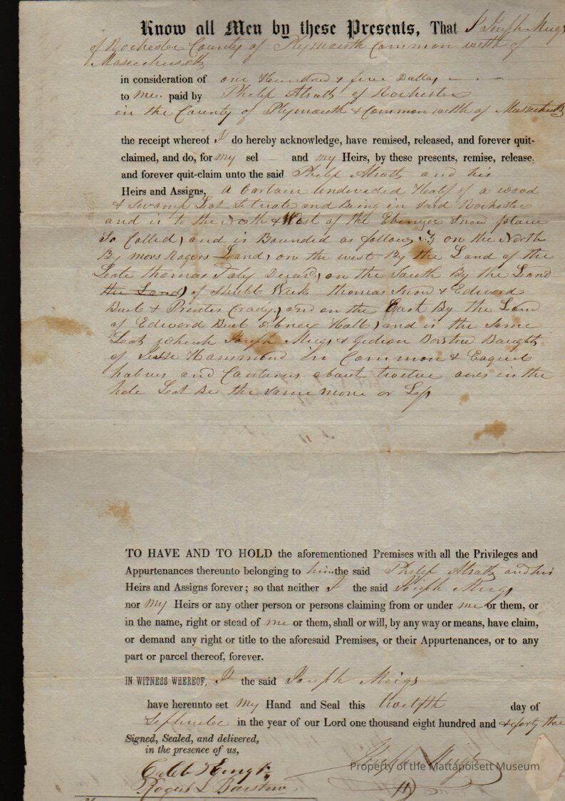 Joseph Meigs to Philip Atsatt, wood and swamp lot for $105.Collection