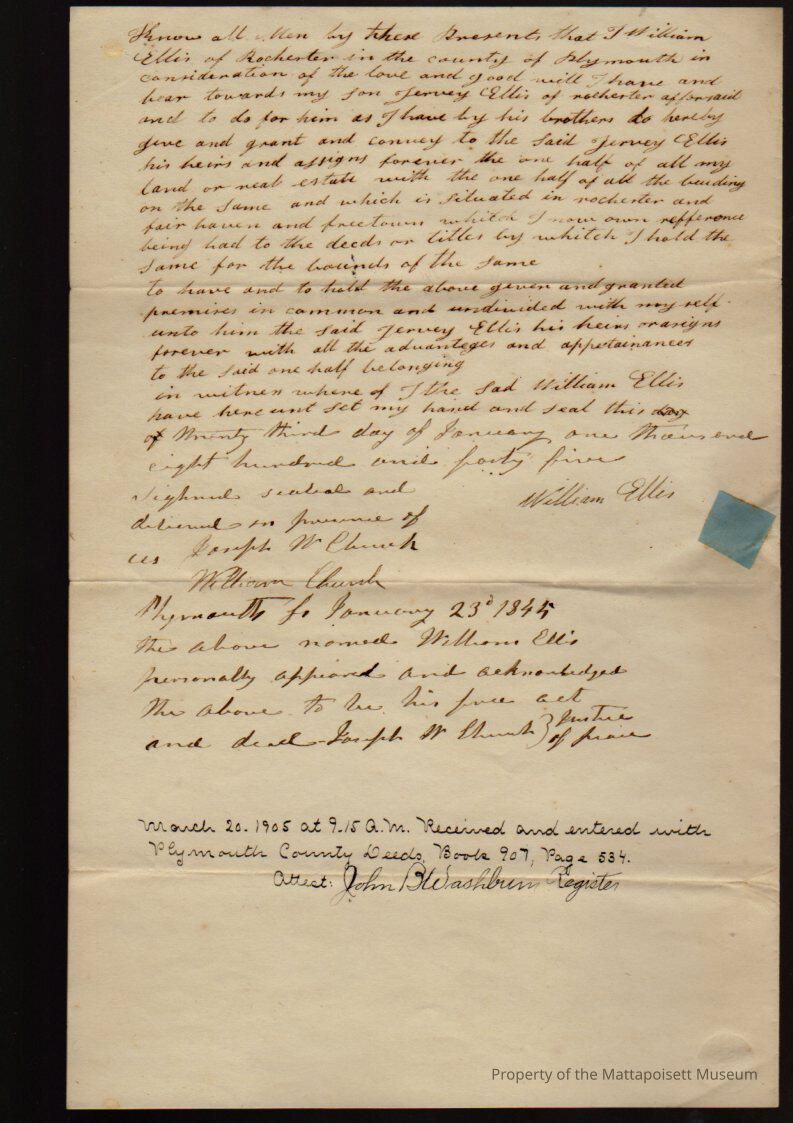 William Ellis to Jervey Ellis, land to son for love and good will.Collection