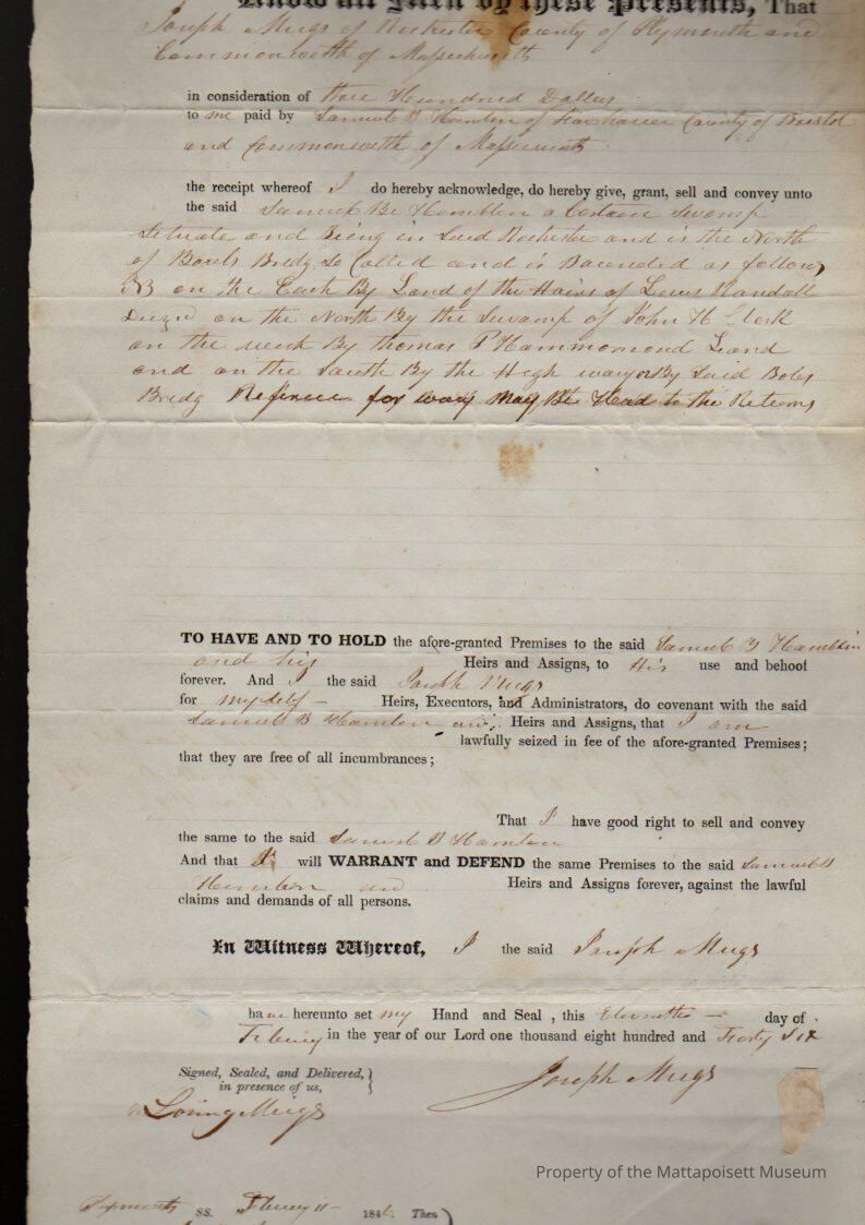 Joseph Meigs to Samuel B. Hamlin, swamp land for $300.Collection