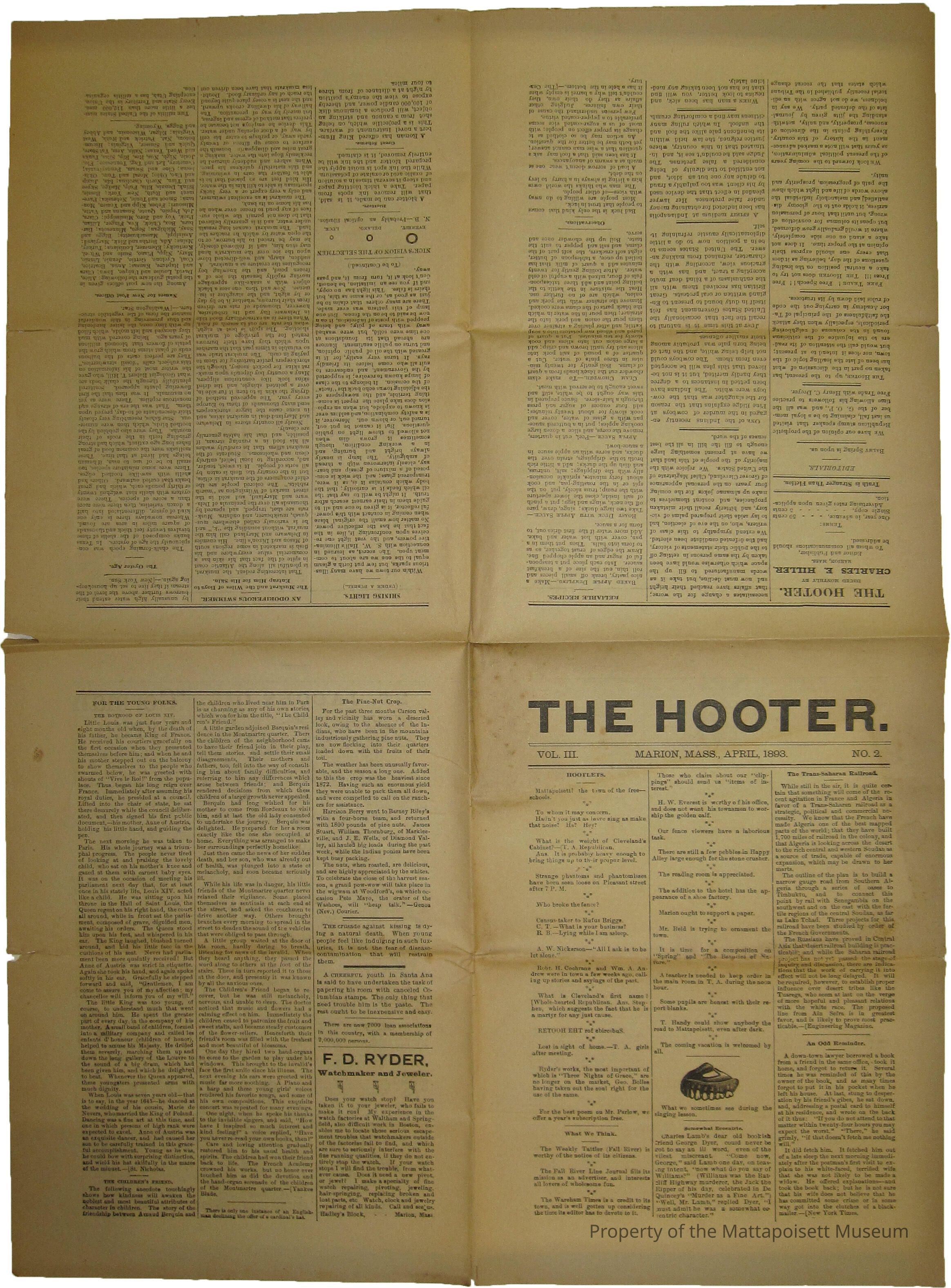 The Hooter, Marion, Mass. April 1893. Vol. III, No. 2.Acquisition