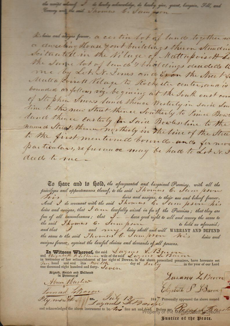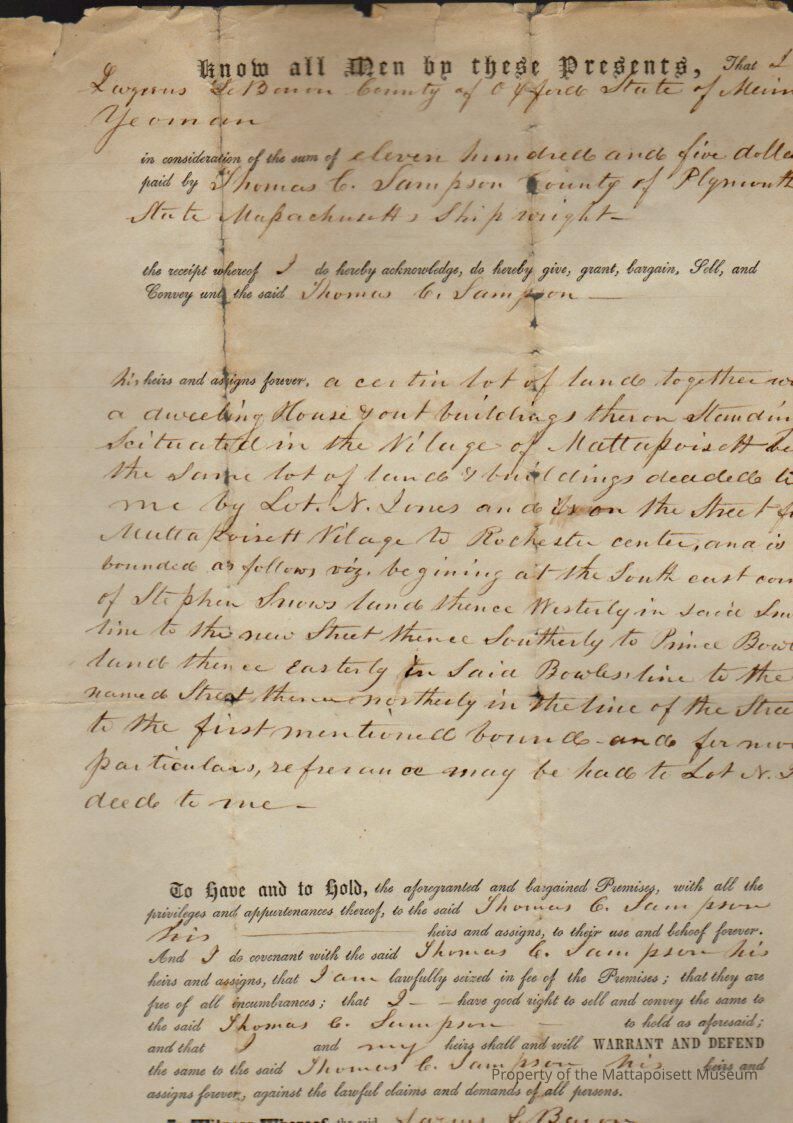 Lazarus & Elisabeth P. LeBaron to Thomas C. Sampson, land and dwelling house for $1,105.Collection