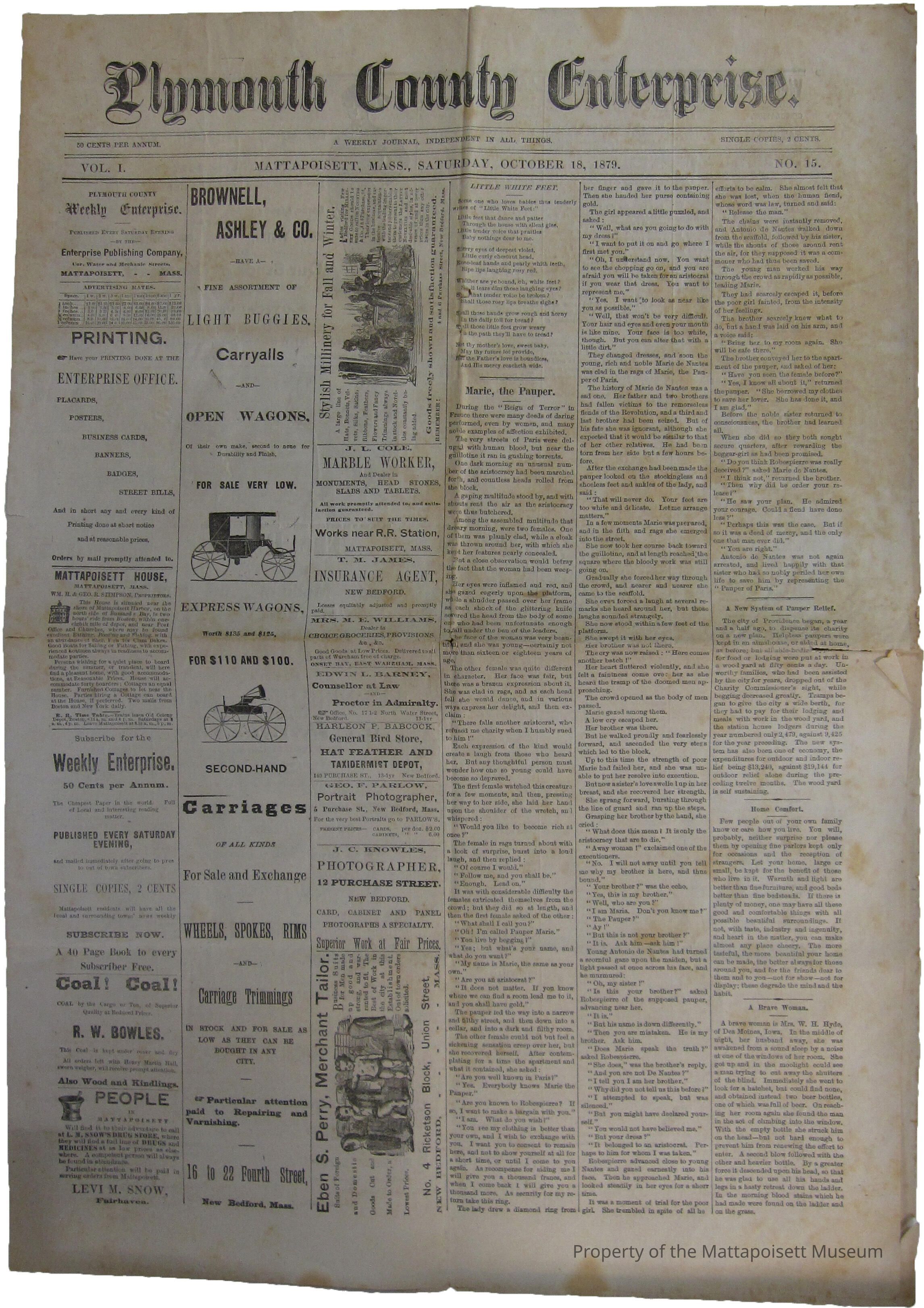 Plymouth County Enterprise, Mattapiosett, Mass, Saturday, October 18, 1879. Vol. I, No. 15.Acquisition