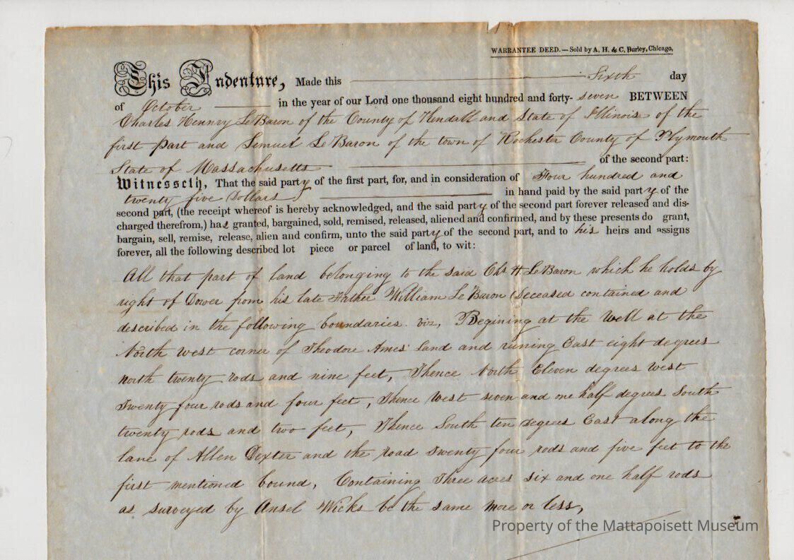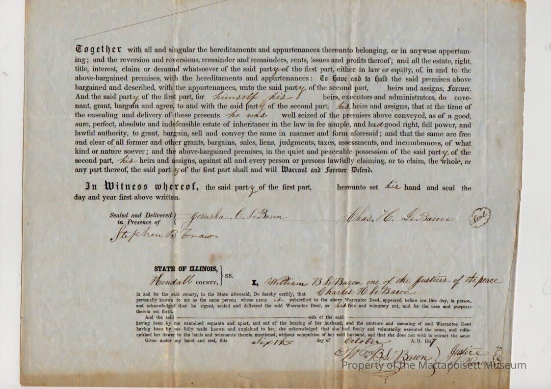 Charles Henry LeBaron of IL to Samuel LeBaron, land for $425.Collection