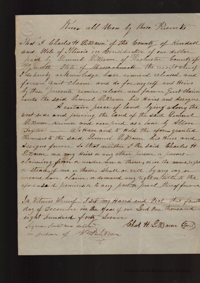 Charles H. LeBaron of Kendell, IL to Lemuel LeBaron, land for $1.Collection