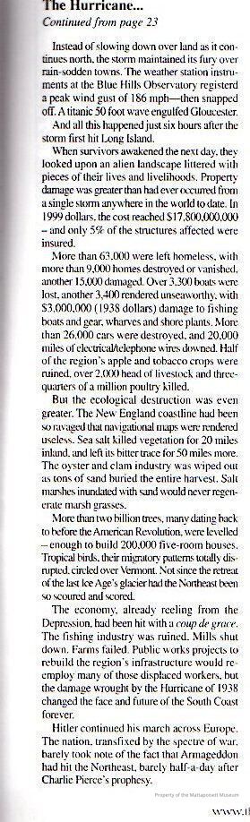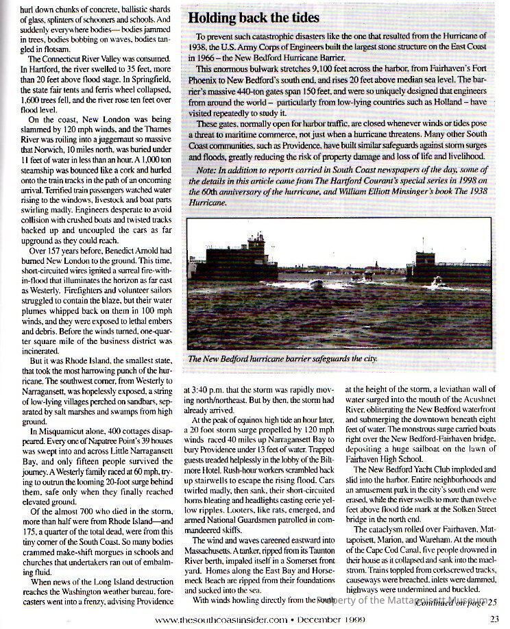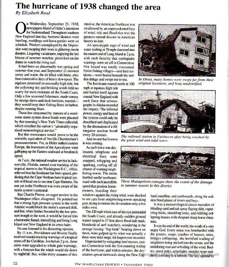 The South Coast, Insider, December 1999. Special Edition; 20th century events that shaped the south coast. The hurricane of 1938 changed the area, by Elizabeth Read.Acquisition