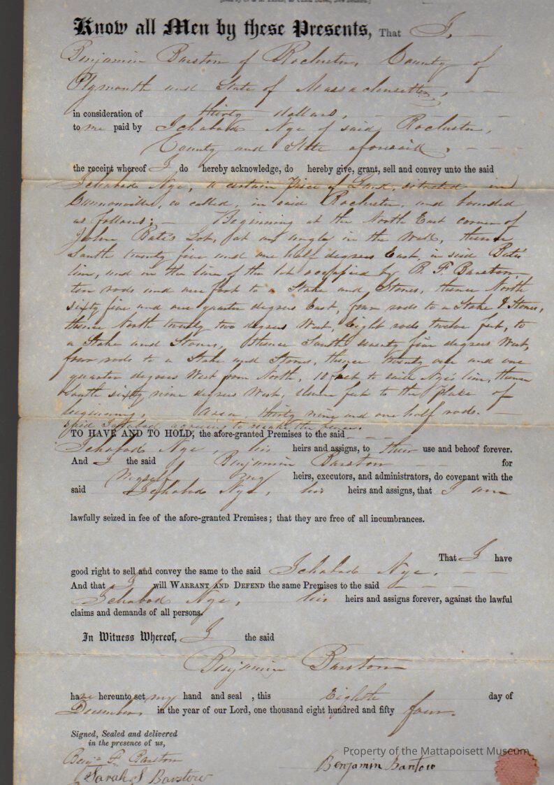 Benjamin Barstow to Ichabod Nye, land for $30.Collection