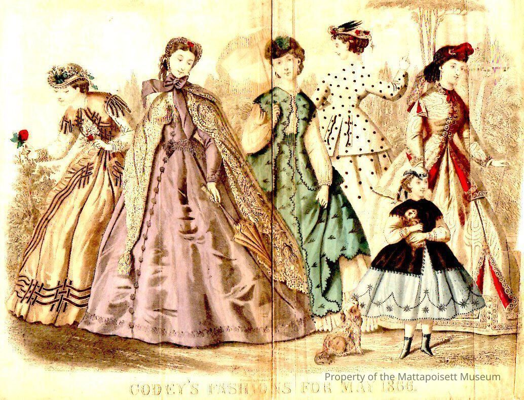 Godey's Fashions "print" for May 1866. Examples of women and girls' fashions of the time.Acquisition