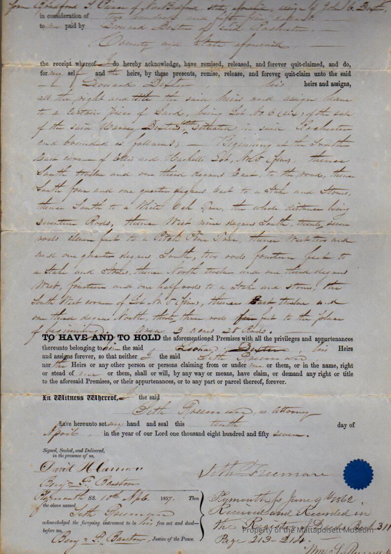 Seth Freeman, Power of Attorney and guardian to Dexter minors to Leonard Dexter, 3 acres and 28 rods for $255.Collection