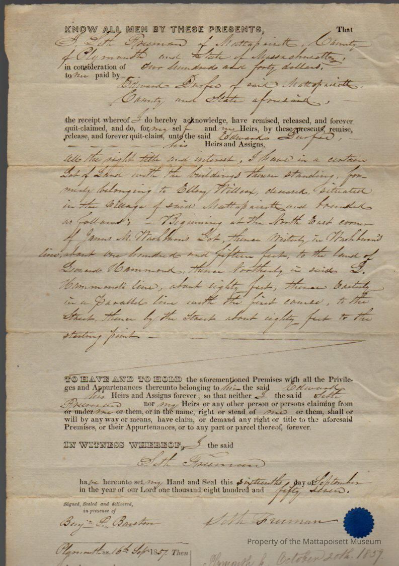 Seth Freeman to Edward Durfee, land and buildings for $140.Collection