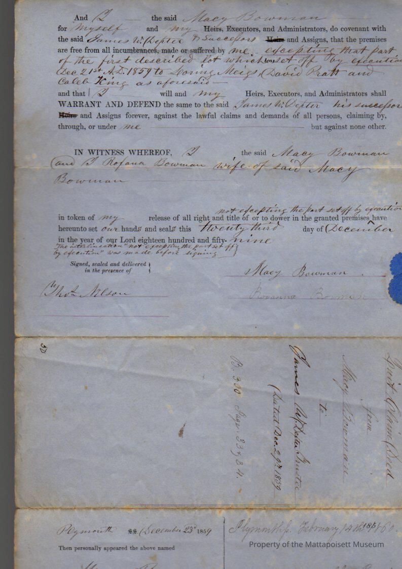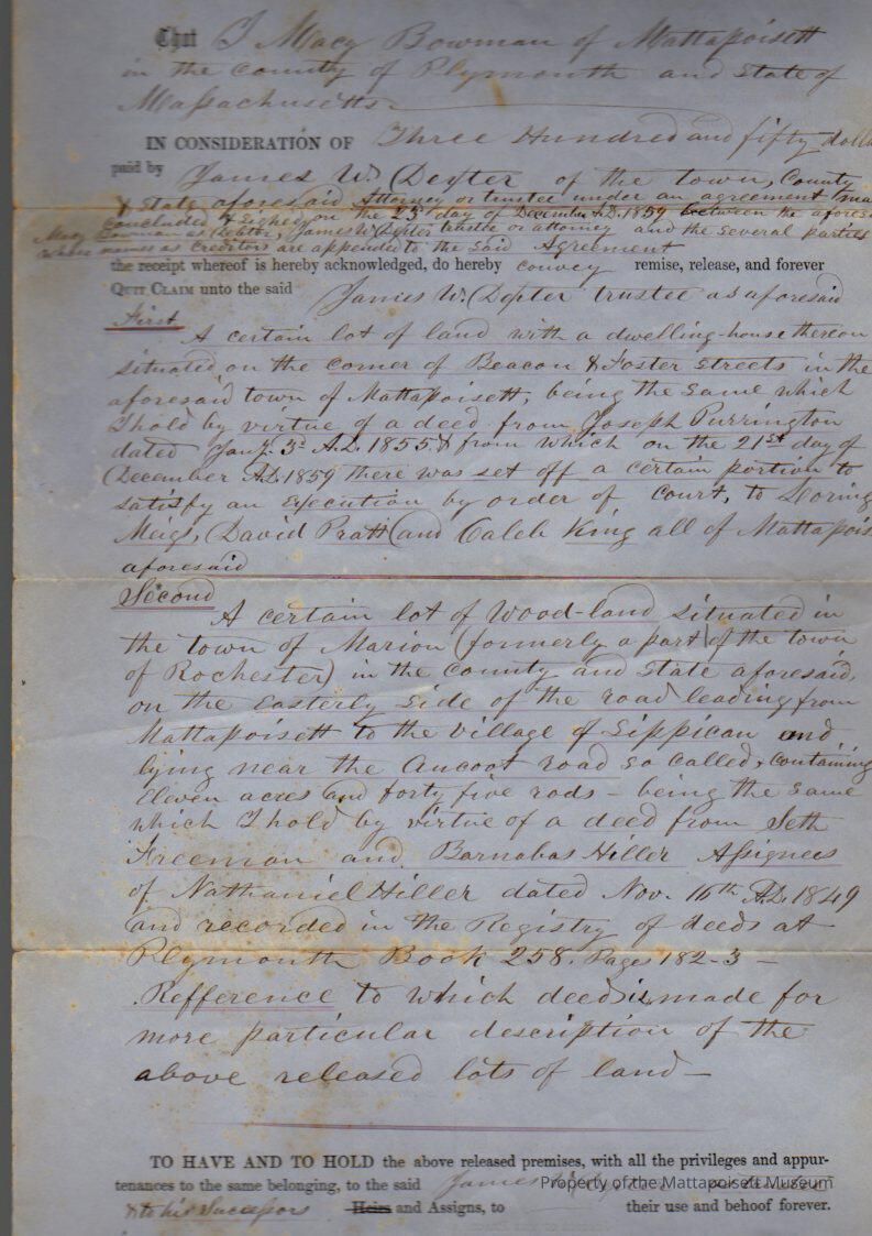 Macy & Roxanne Bowman to James W. Dexter, trustee, corner of Beacon & Foster Streets for $350.Collection