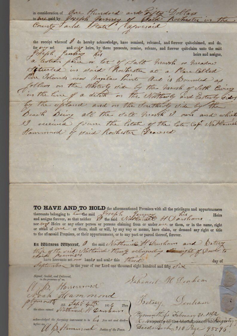 Nathaniel & Betsey Dunham to Joseph Jenney, salt marsh meadow for $150.Collection