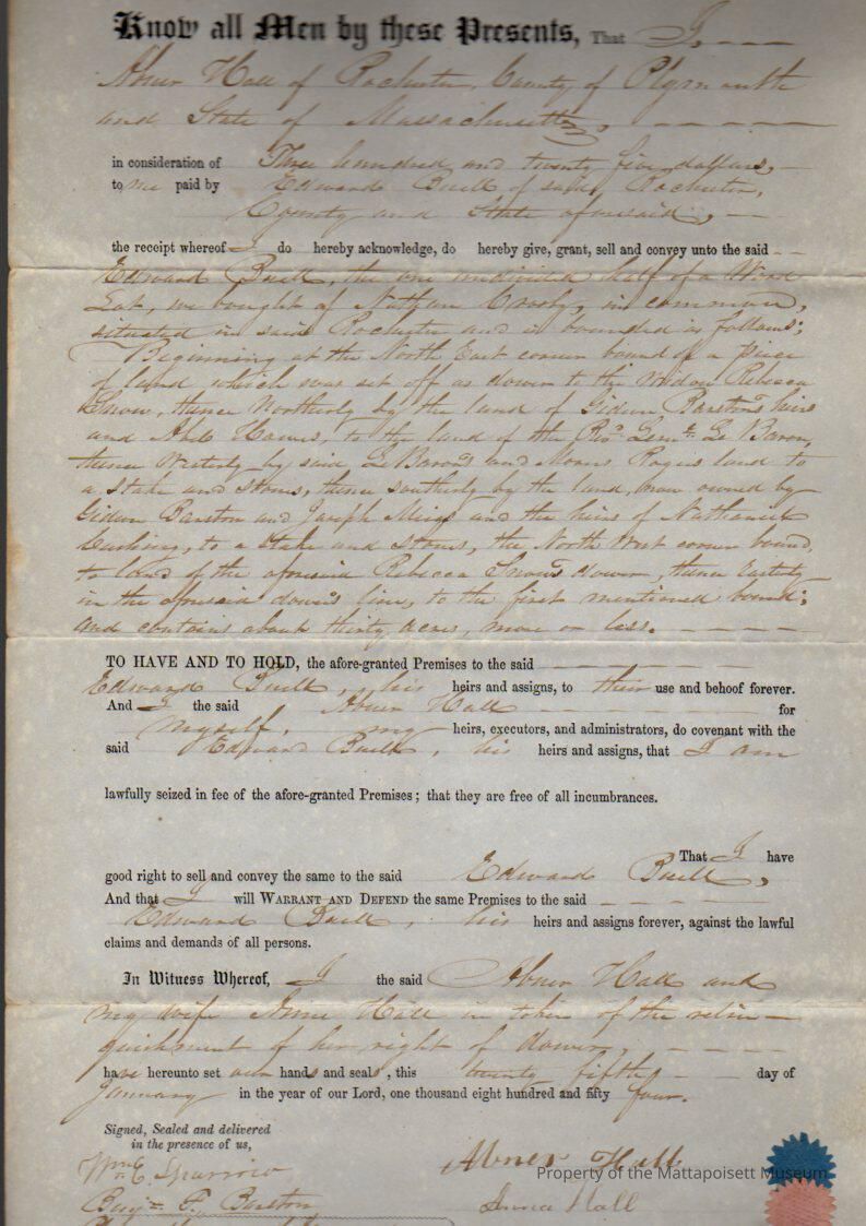Abner & Annie Hall to Edward Buell, 30 acres on ½ woodland lot for $325.Collection