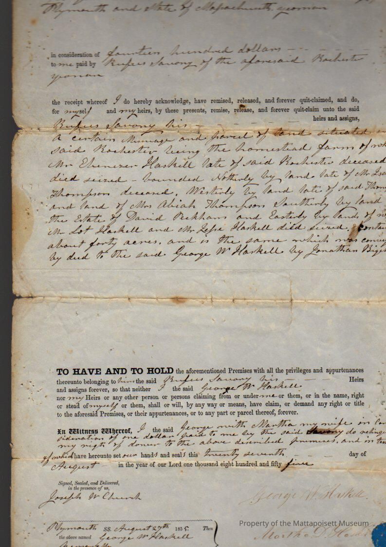 George & Martha D. Haskell to Rufus Savory, Ebenezer Haskill homestead farm for $1,400.Collection