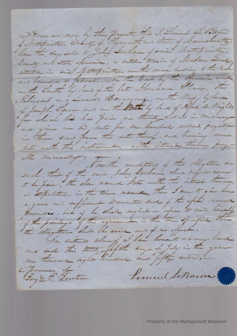 Lemuel LeBaron to Jabez Gorhum, meadowland.Collection