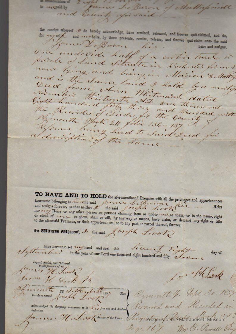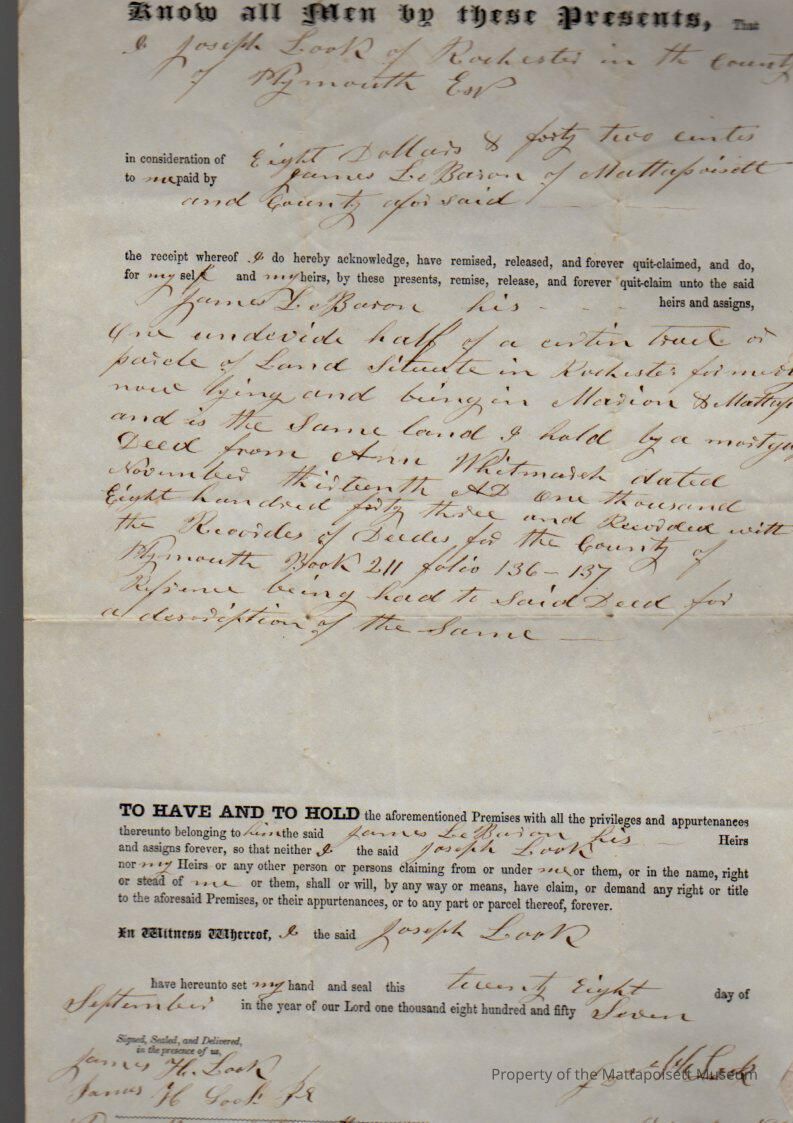 Joseph Look to James LeBaron, land in Marion and Mattapoisett for $8.42.Collection
