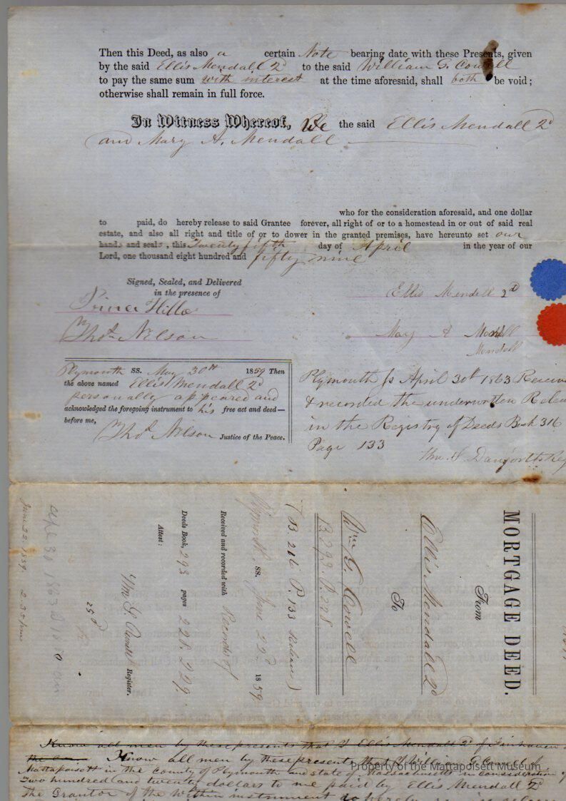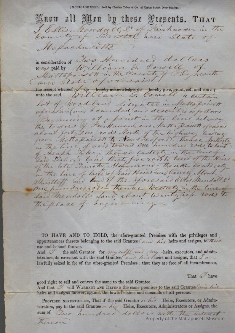 Ellis 2nd & Mary A. Mendall to William G. Cowell, $200 woodland mortgageCollection