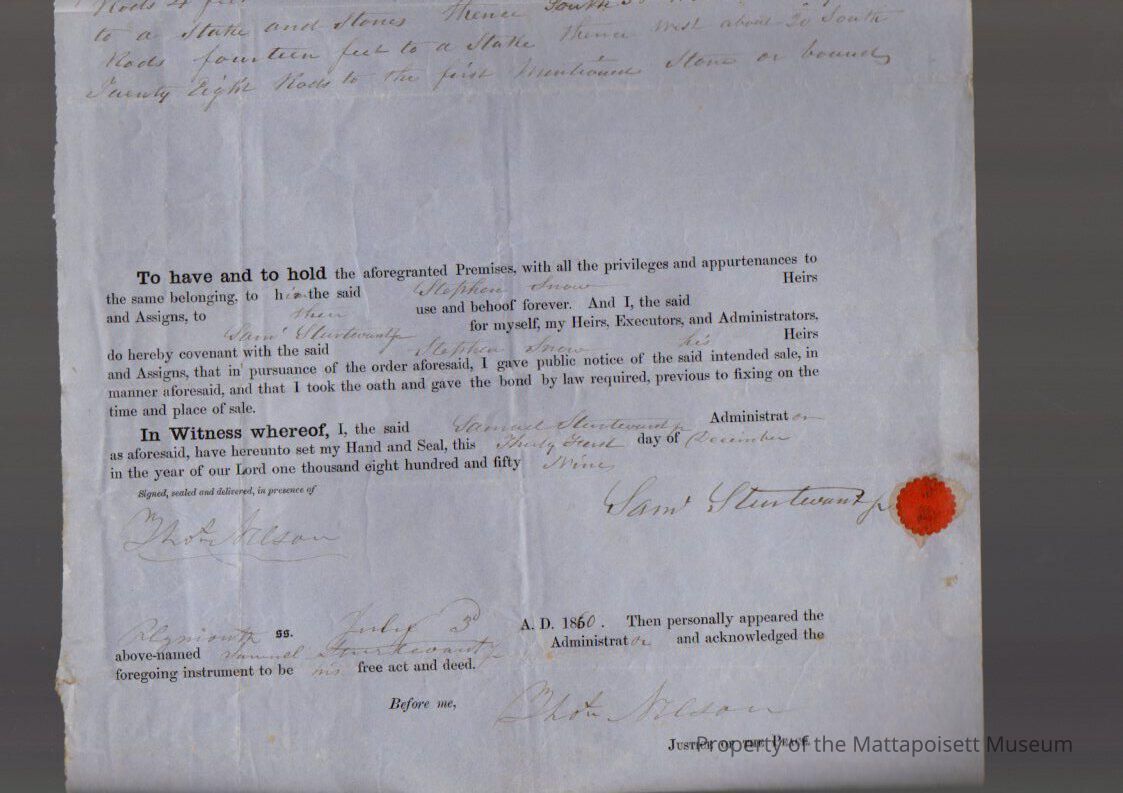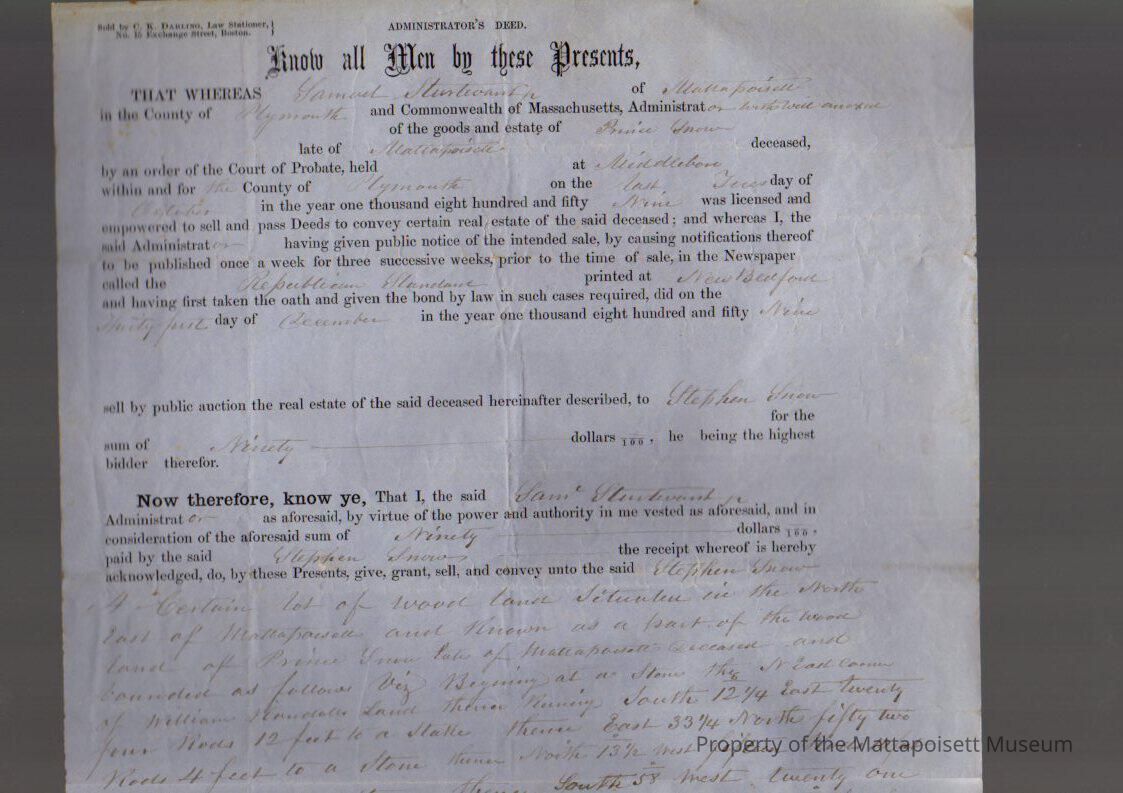 Samuel Sturtevant Jr., administrator of will of Prince Snow to Stephen Snow, public notice for sale of woodland of Prince Snow.Collection