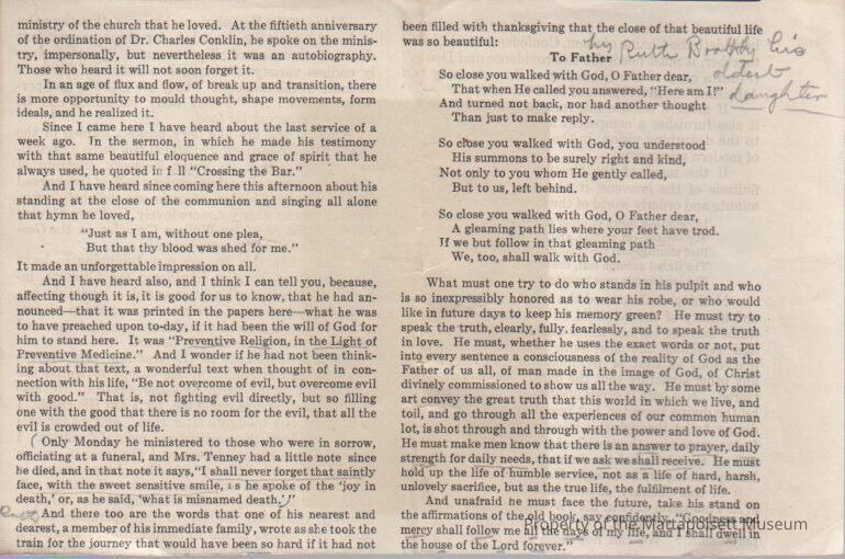Poem by Ruth Brothby his oldest daughter. "To Father"Collection