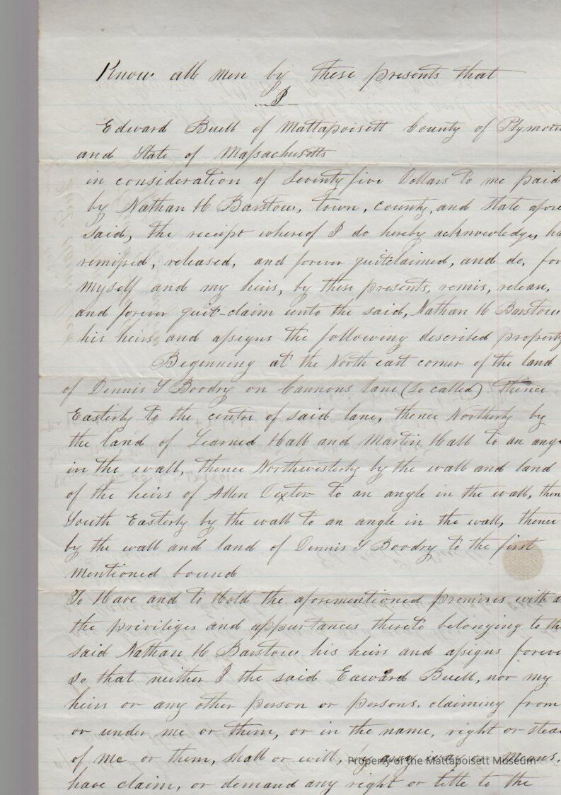 Edward Buell to Nathan H. Barstow, land on Cannon's Lane for $75Collection
