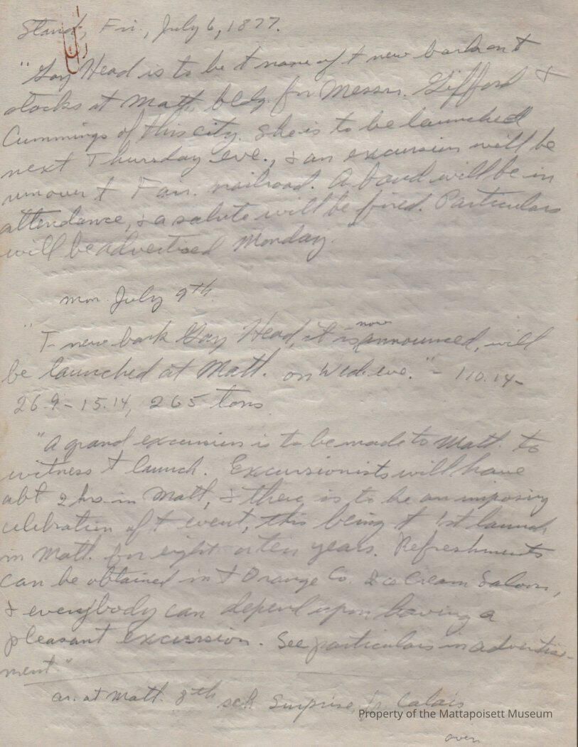 Articles from The Standard July 6, 1877 - July 12, 1877 regarding Bark "Gay Head"Collection
