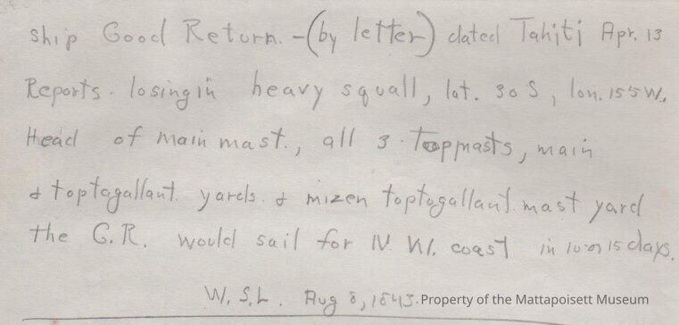 Whalemen's Shipping List memorandum about a letter from Ship "Good Return"Collection