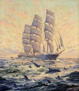 Painting by Anton Otto Fischer in the Saturday Evening Post. Ship with dolphins (original 1932).Collection