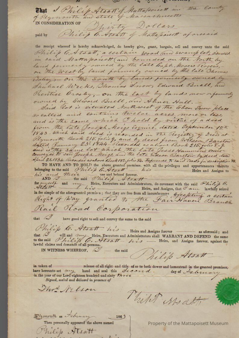 Philip Atsatt to Phillip C. Atsatt, 12 acres wood and swamp lot for $30.Collection