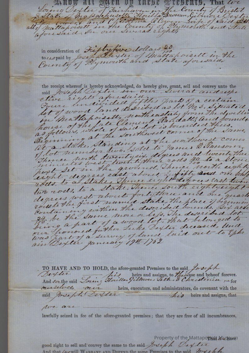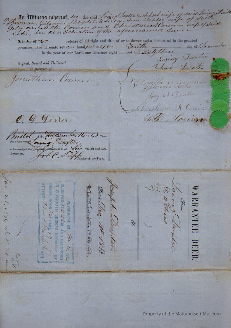 Loring Dexter of Fairhaven, Florilla H. Bowman, Gilmore Dexter, Seth & Christina R. Cowen, land for $55.20.Collection