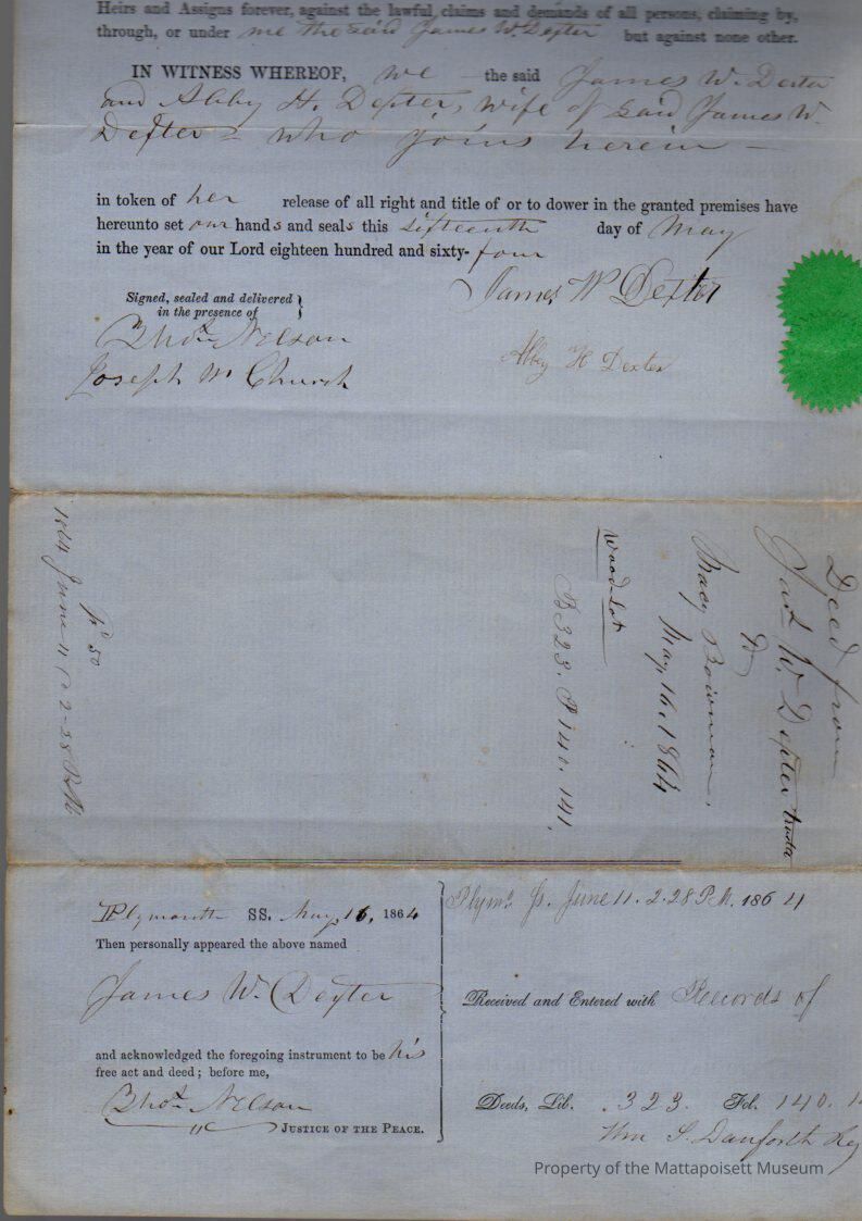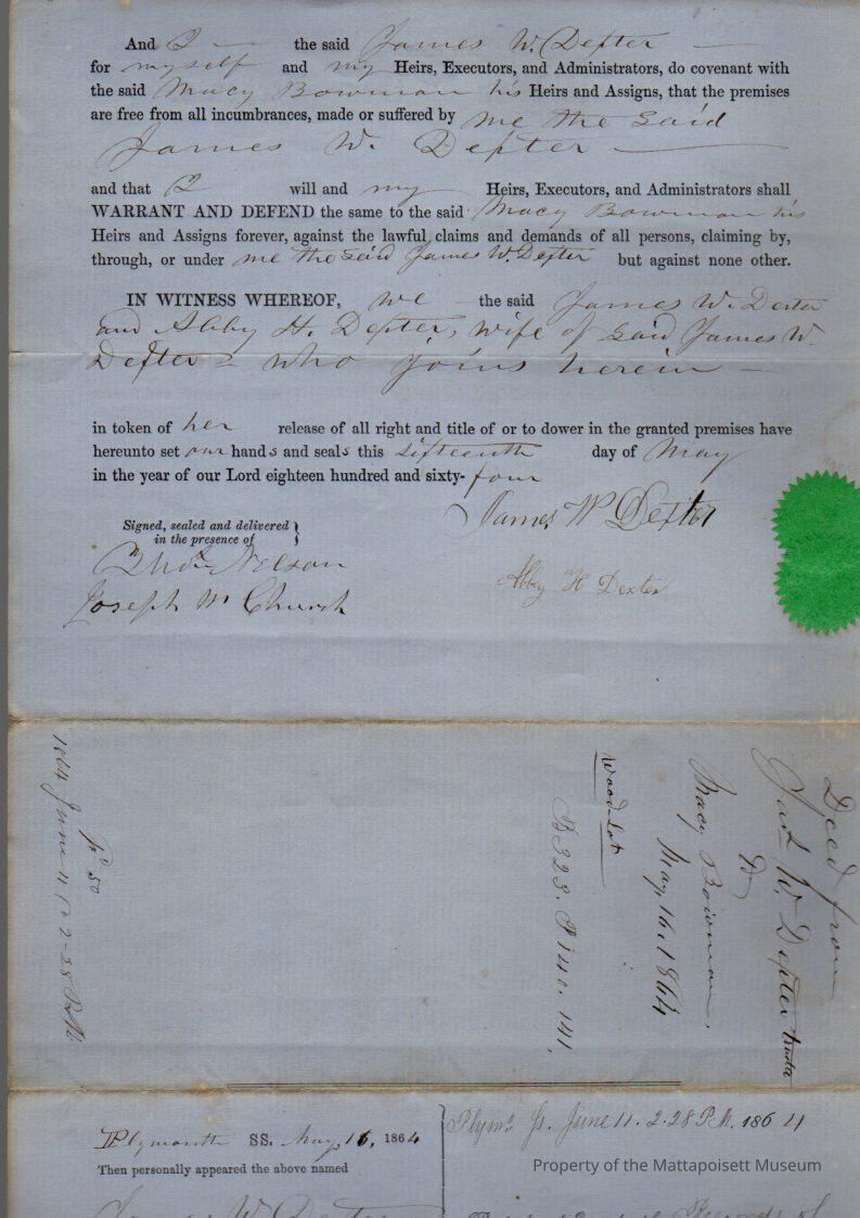 James W. & Abbey H. Dexter to Macy Bowman, land for $300.Collection