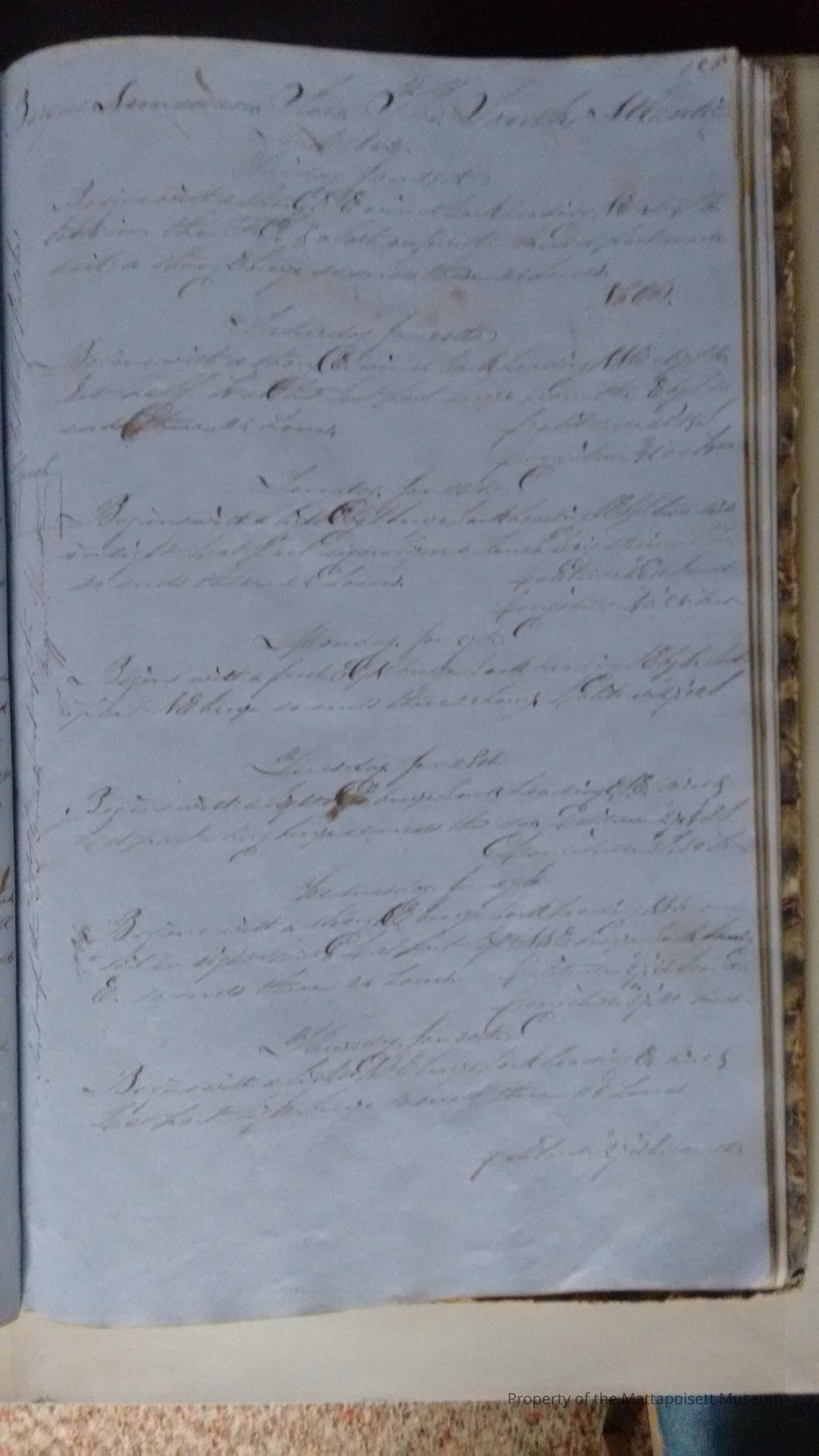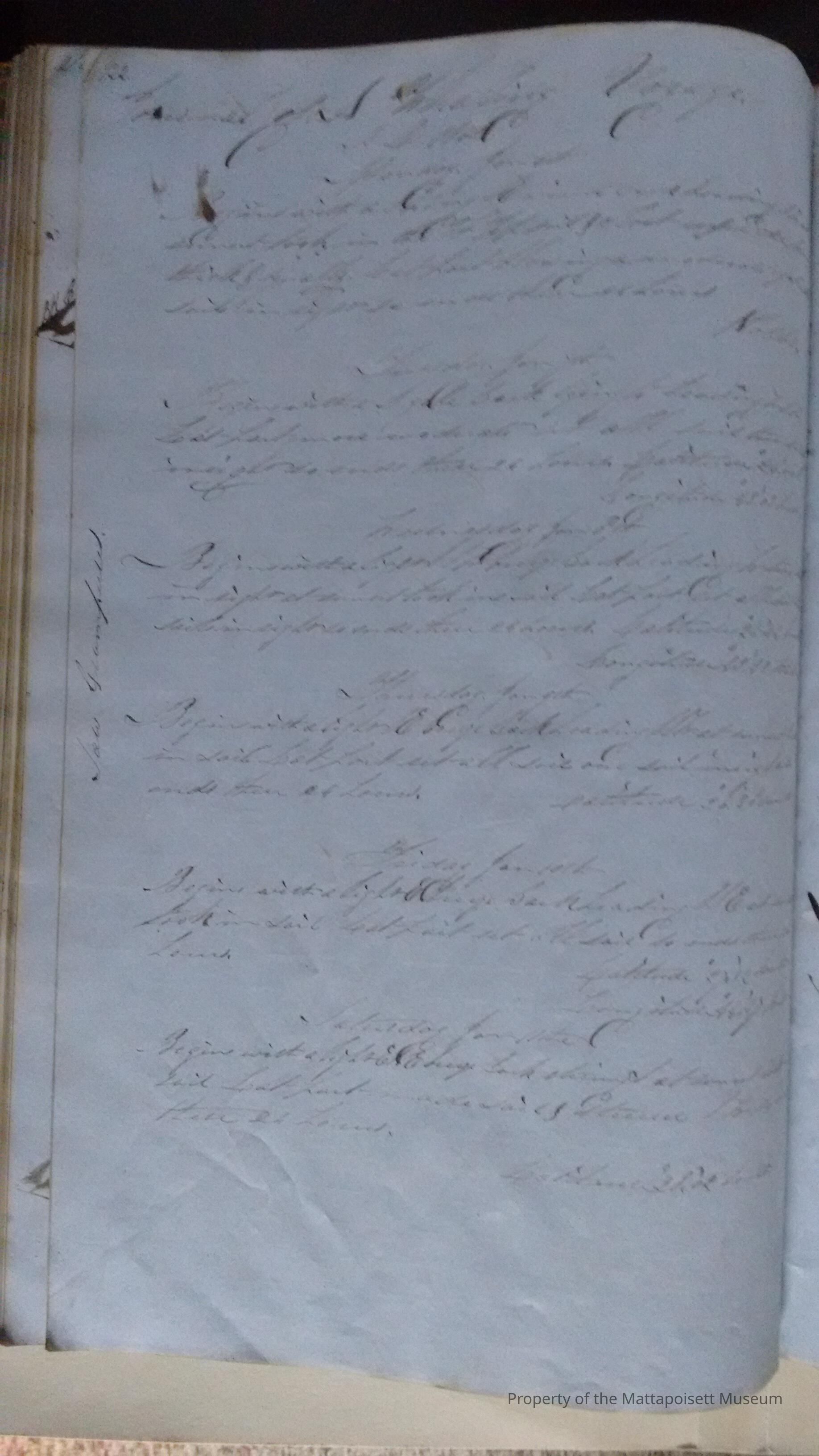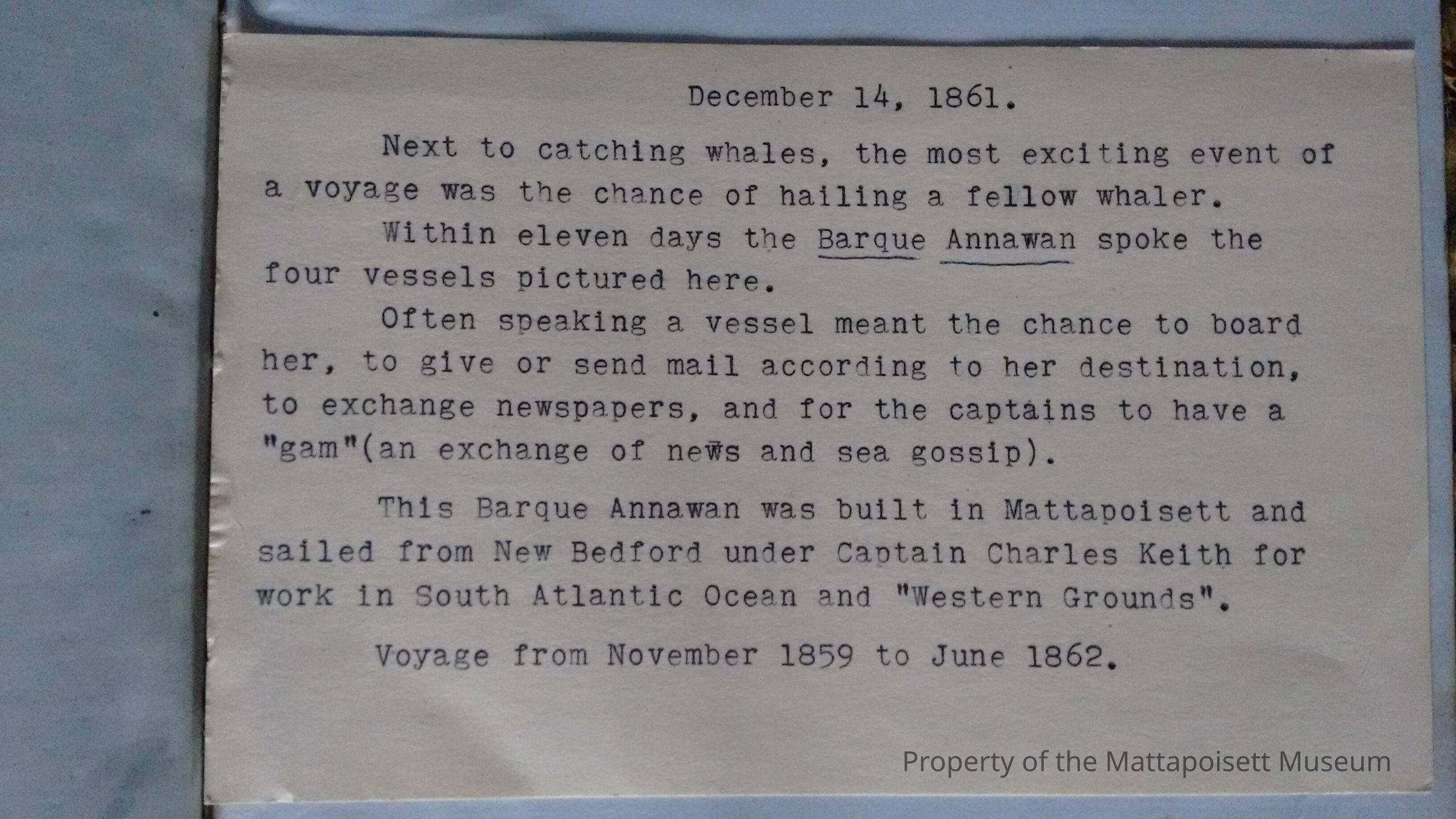 Log book of Bark Annawan, voyage from November 1859 to June 1862. Whale, ship and anchor stamps. Some of the writing has faded.Acquisition