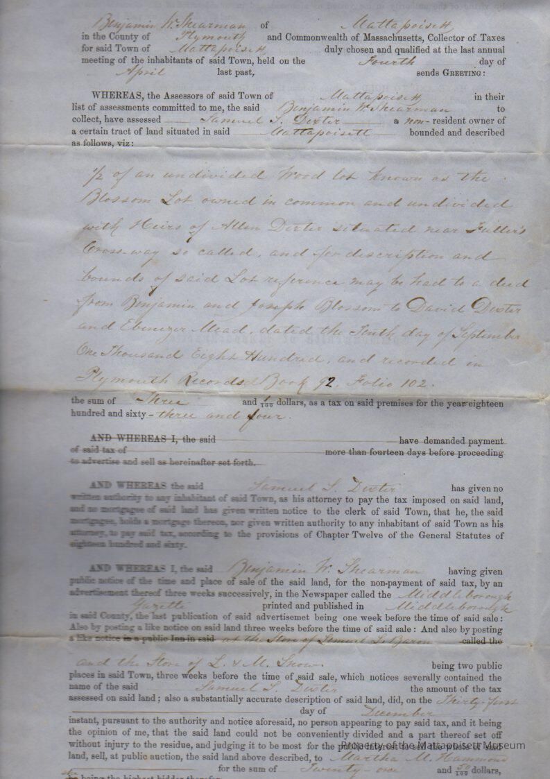 Benjamin W. Shearman to Samuel S. Dexter, ½ Blossom Lot.Collection