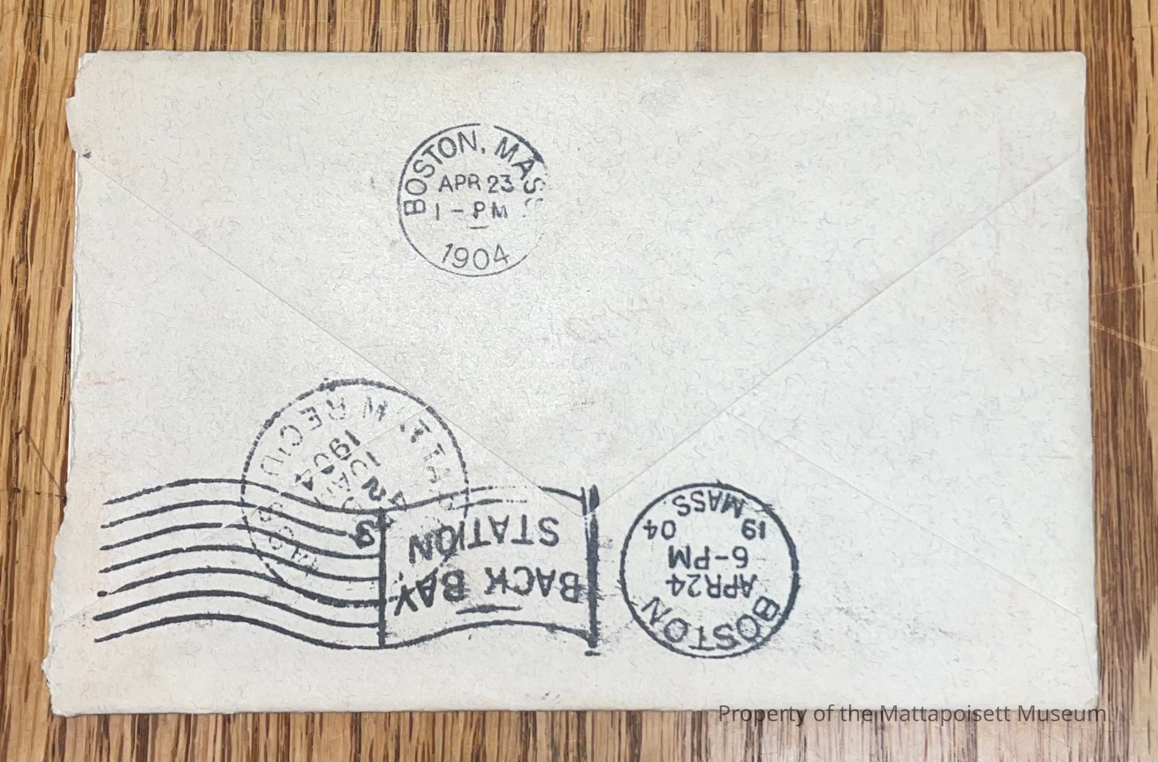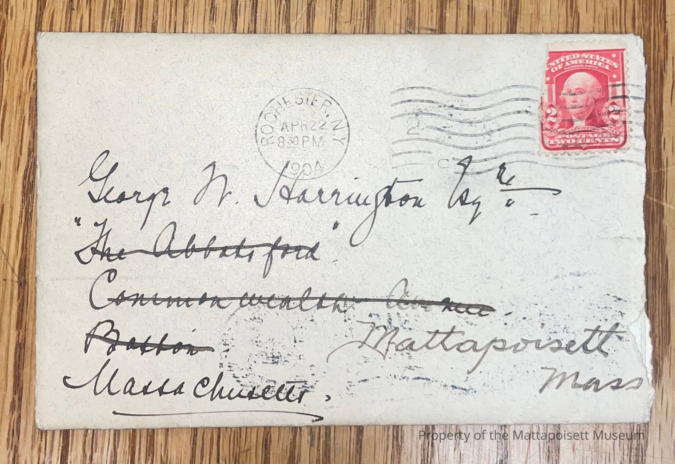 Part of the 2022.4 George W. Harrington collection. Harrington is a published author who spent his summers writing in Mattapoisett. 2022.4.02 is the Personal Correspondence series.Collection