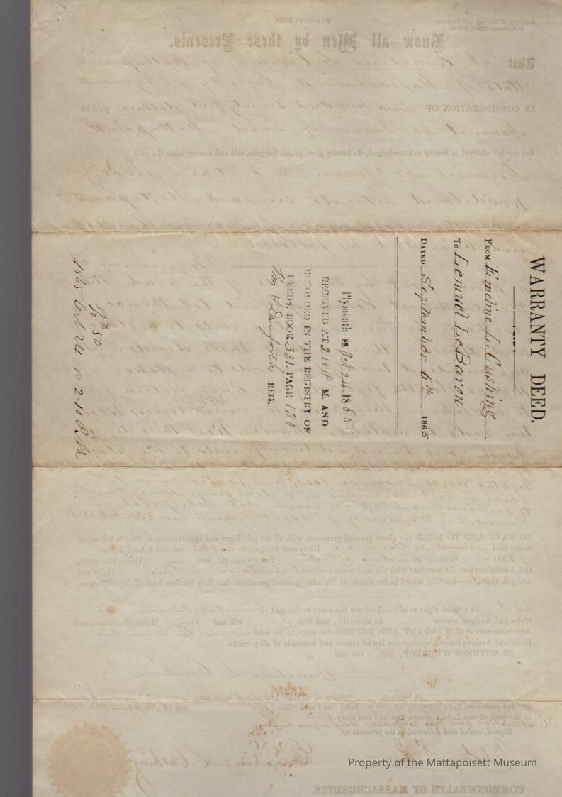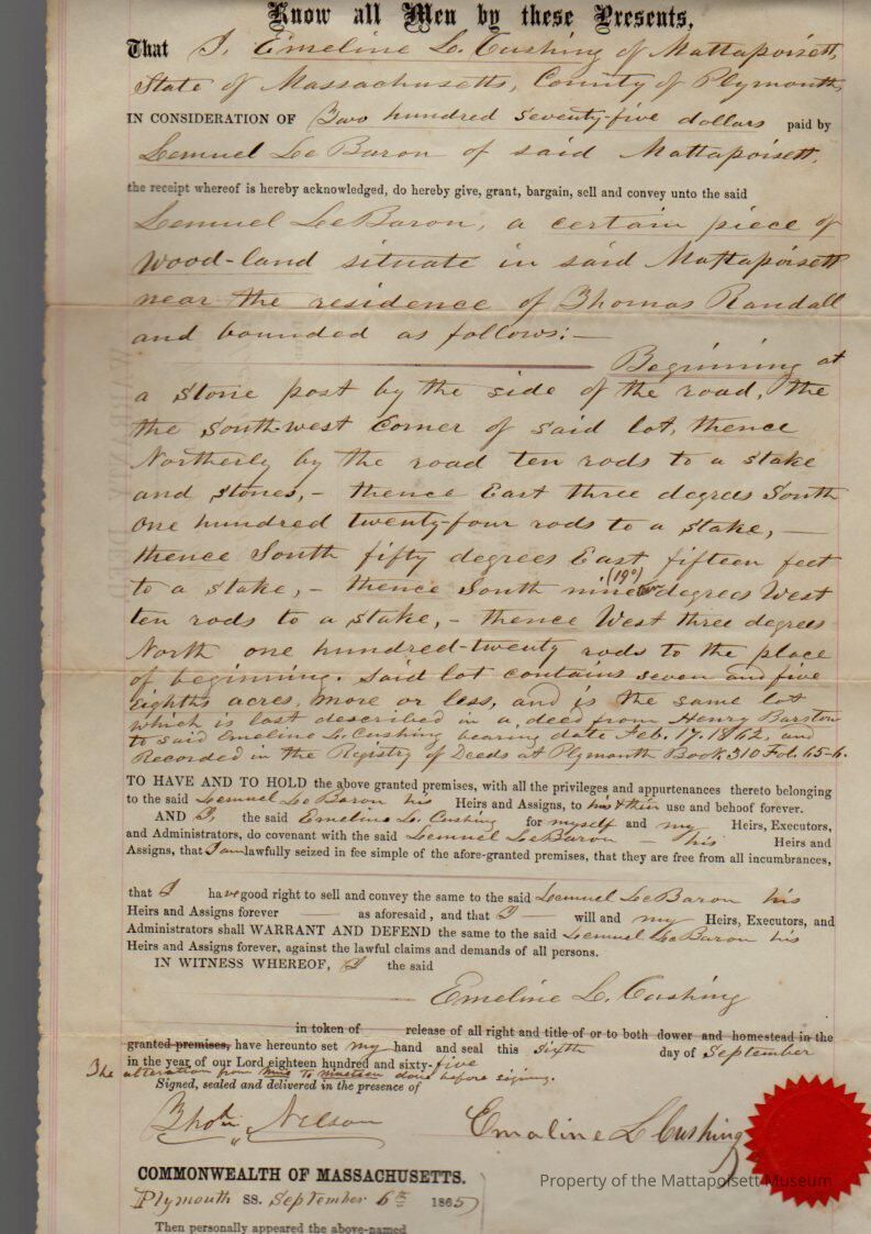 Emeline L Cushing to Lemuel LeBaron, woodland for $275.Collection
