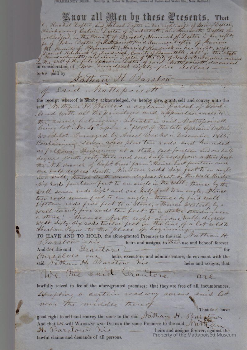 Heirs of Ephraim Dexter to Nathan H. Barstow, Lot A, 7 acres of woodland for $285.Collection