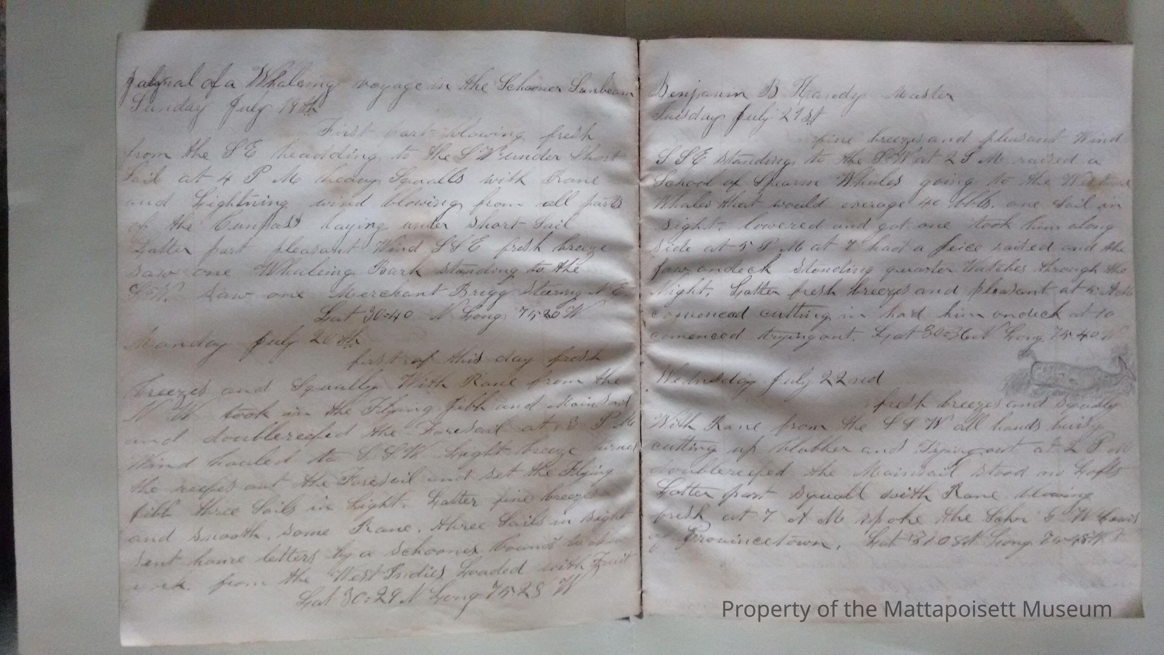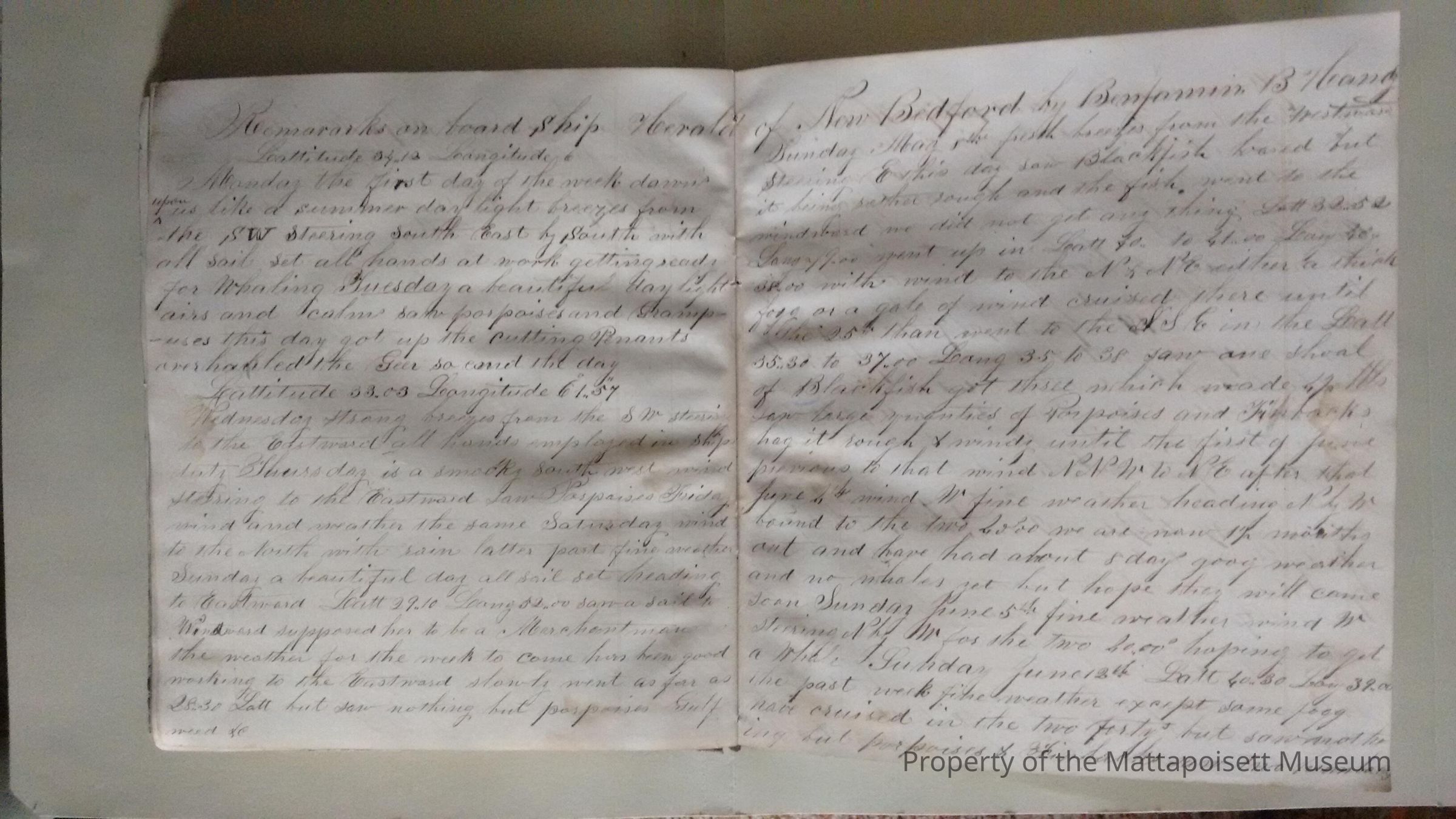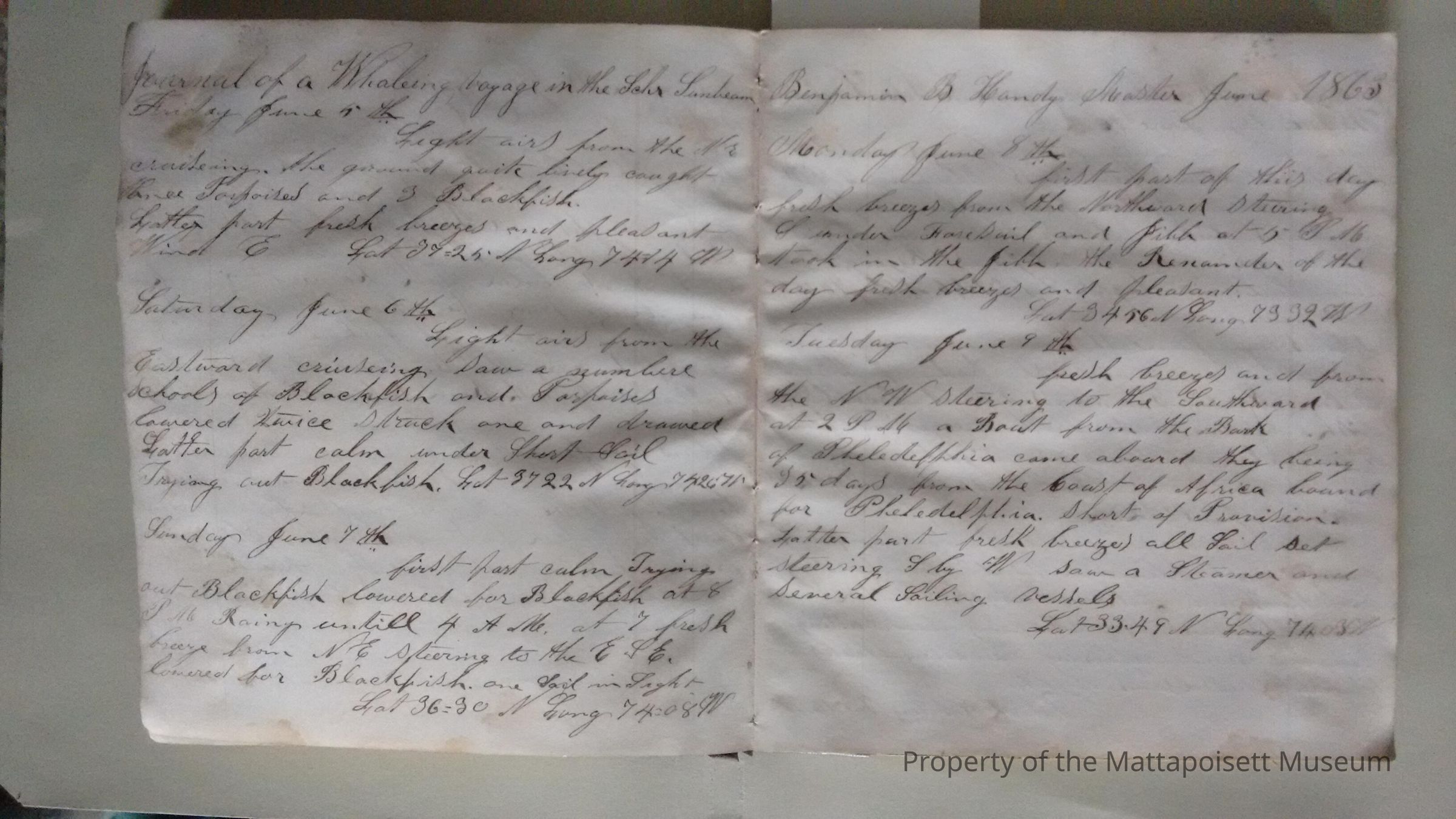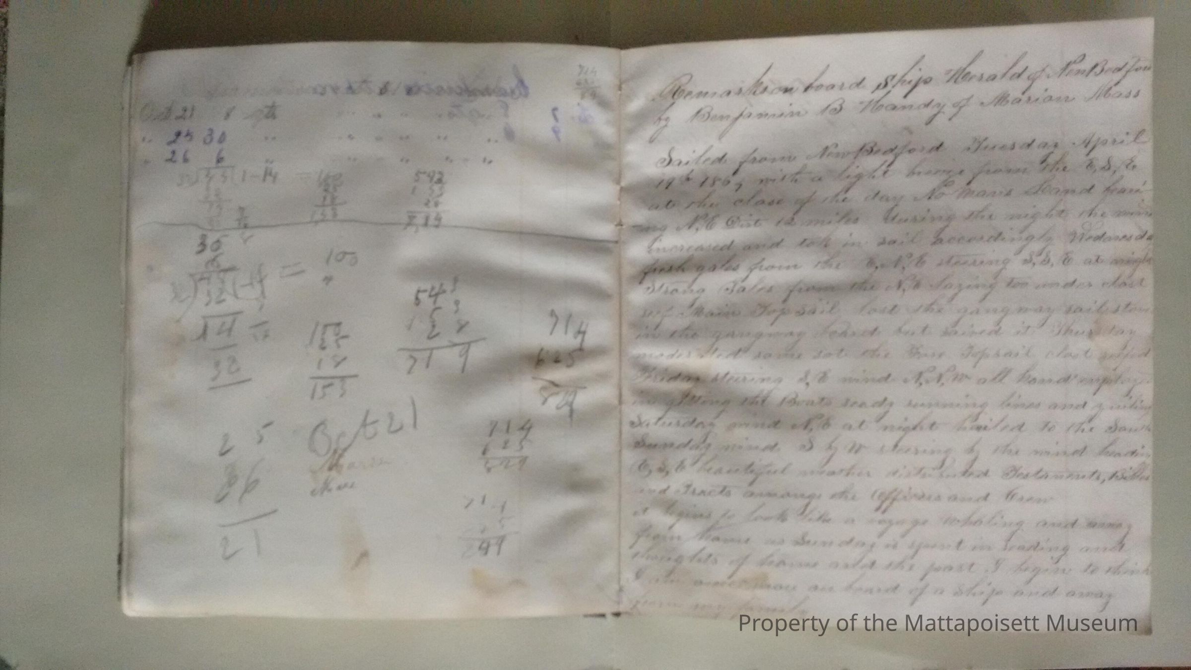 Log book of Schooner Sunbeam, Ship Herald and Schooner A. L. Putnam. Journal of a Whaling Voyage in the Scht Sunbeam, Benjamin B. Handy, Master, May 1863. Remarks on board Ship Herald of New Bedford, by Benjamin B. Handy of Marion, Mass (sailed from New Bedford, Tuesday, April 19th 1864), and remarks on board Schr. A. L. Putnam by B. B. Handy.Acquisition