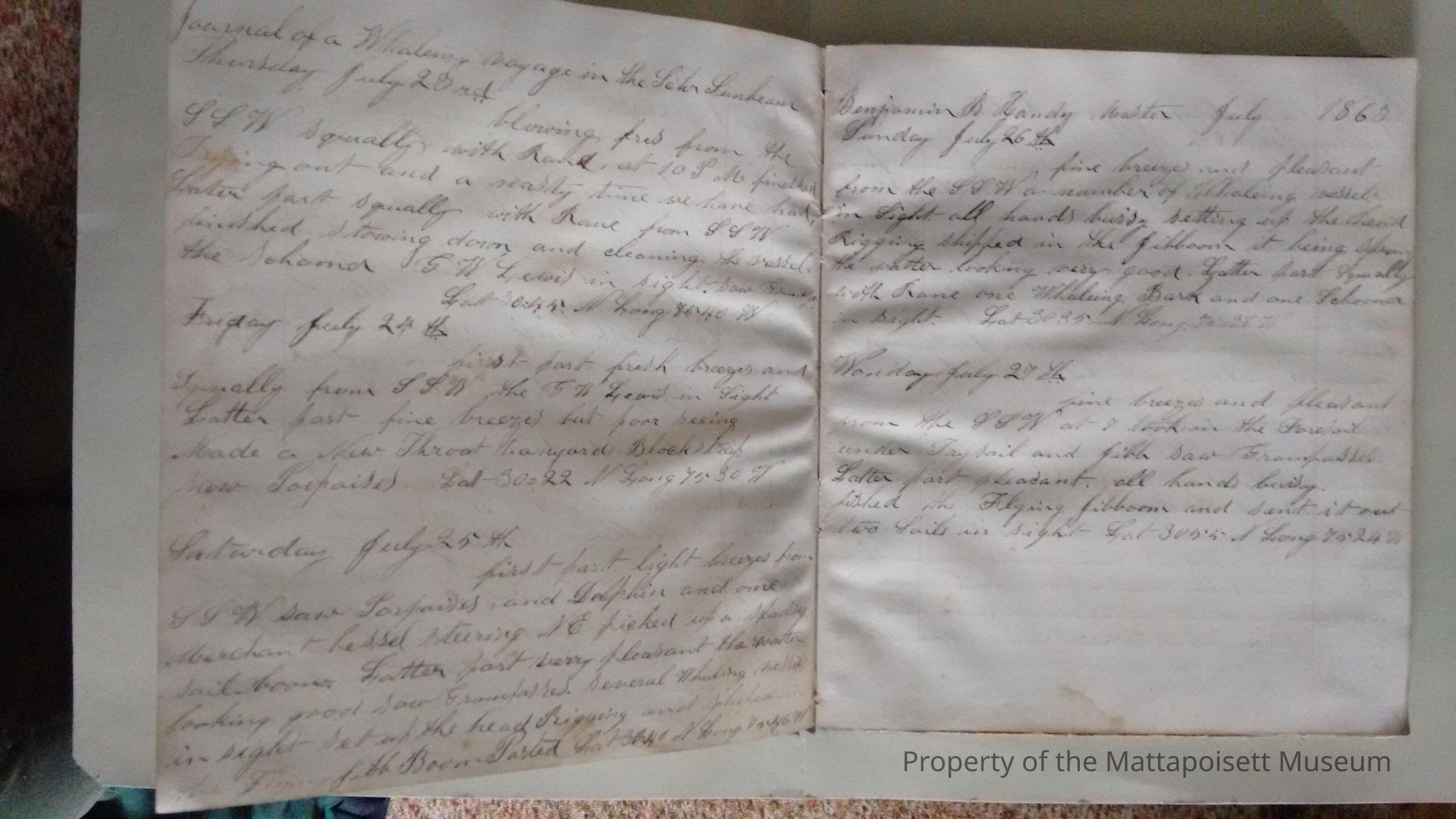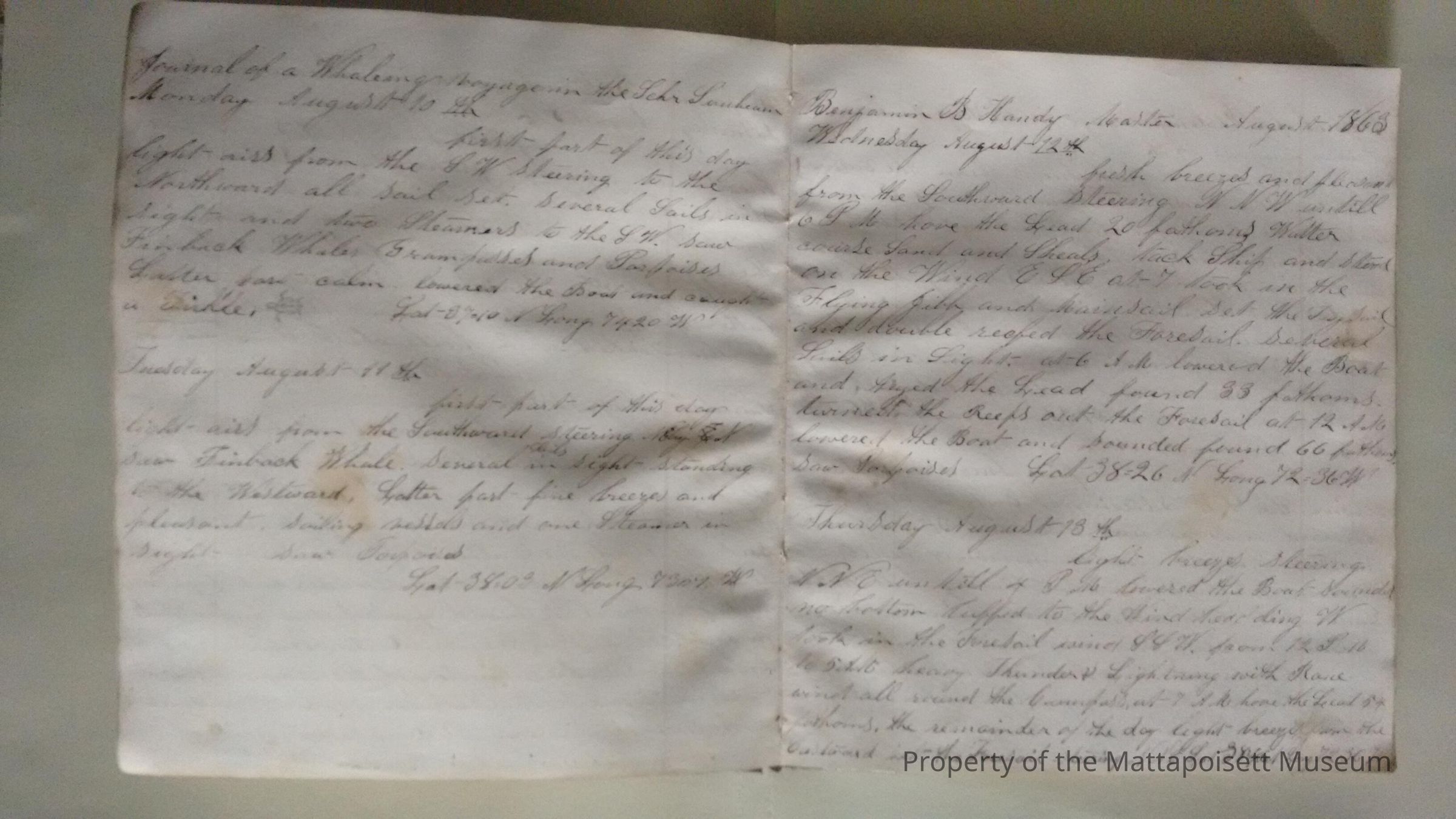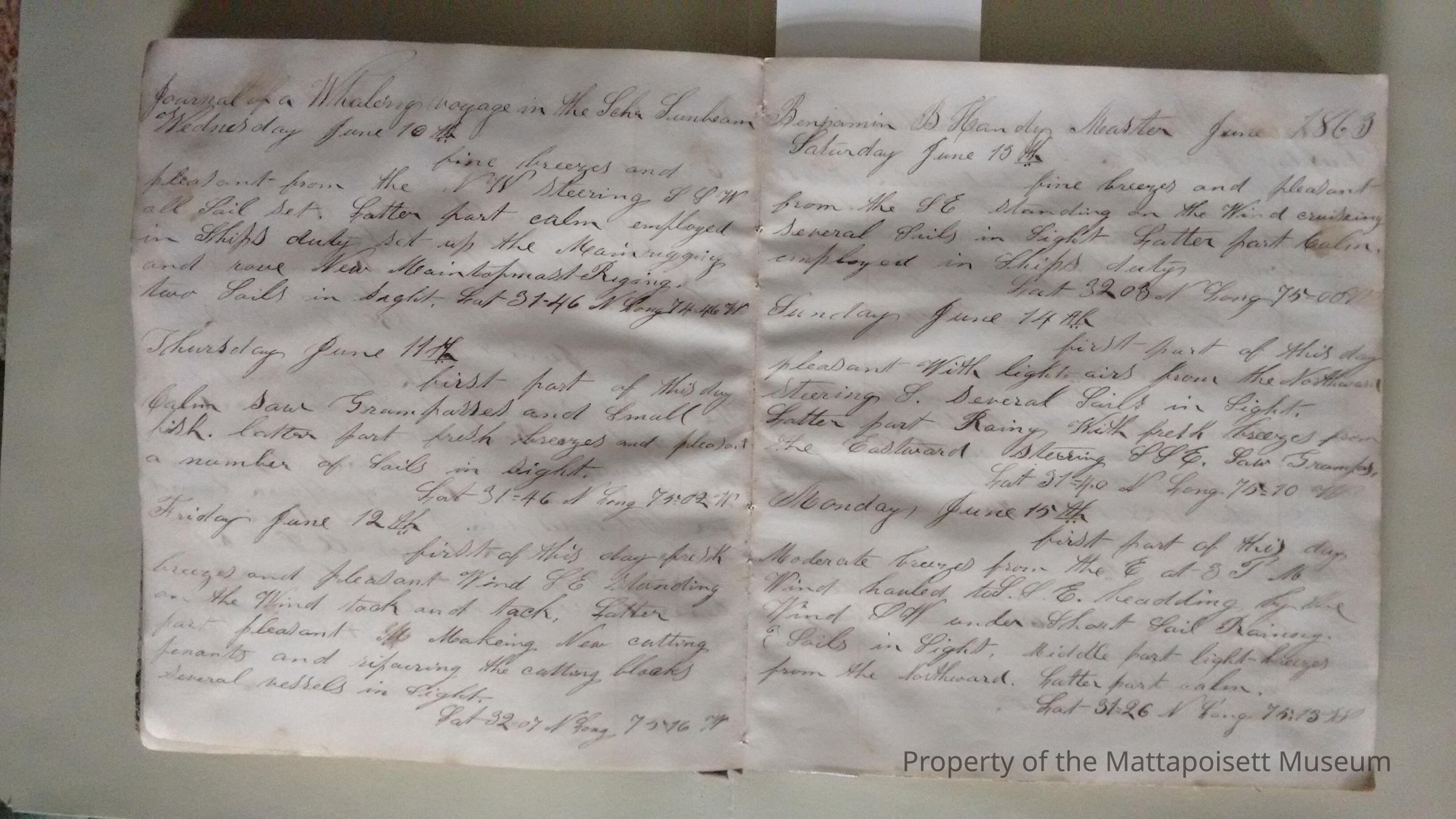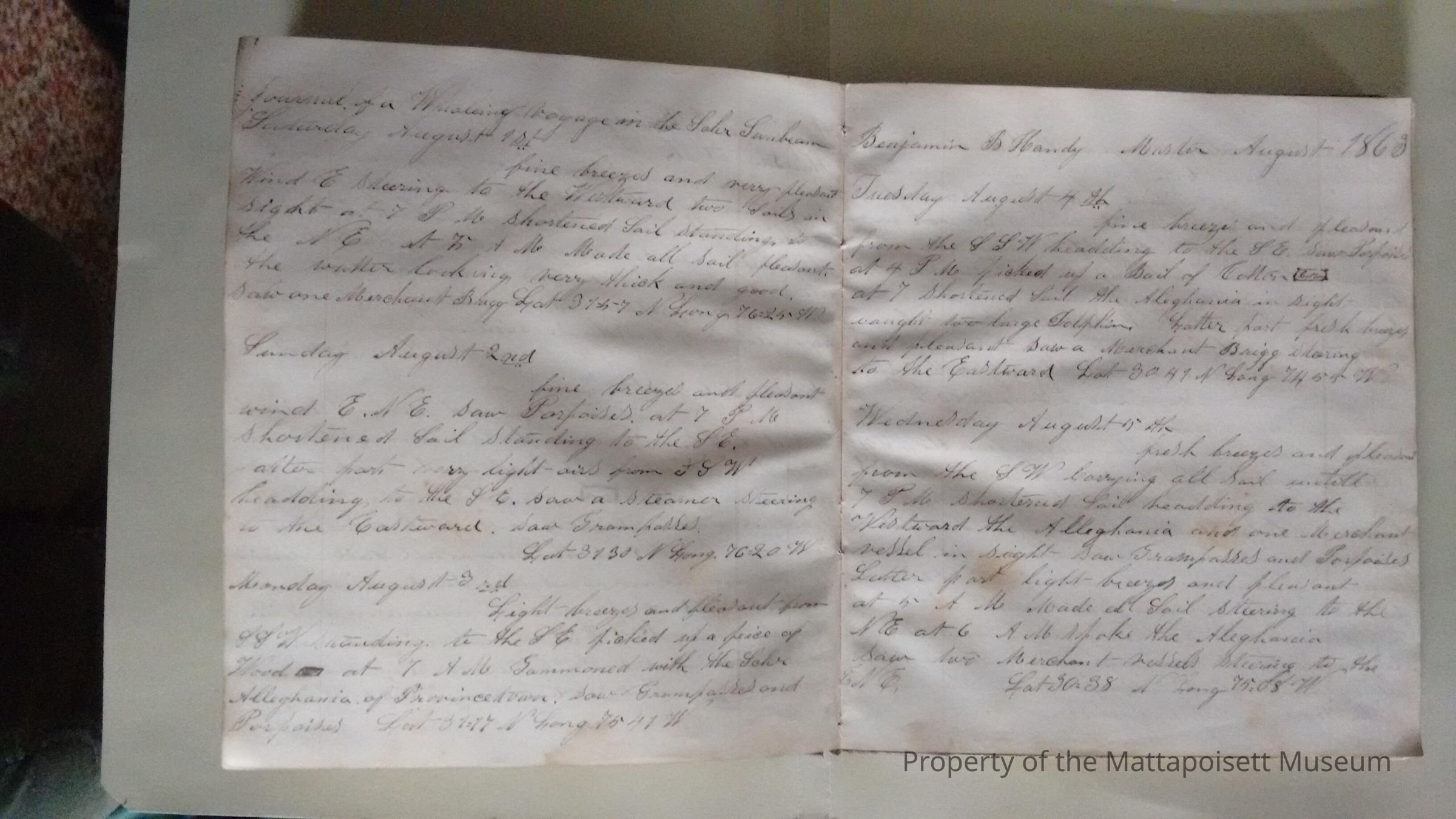 Log book of Schooner Sunbeam, Ship Herald and Schooner A. L. Putnam. Journal of a Whaling Voyage in the Scht Sunbeam, Benjamin B. Handy, Master, May 1863. Remarks on board Ship Herald of New Bedford, by Benjamin B. Handy of Marion, Mass (sailed from New Bedford, Tuesday, April 19th 1864), and remarks on board Schr. A. L. Putnam by B. B. Handy.Acquisition