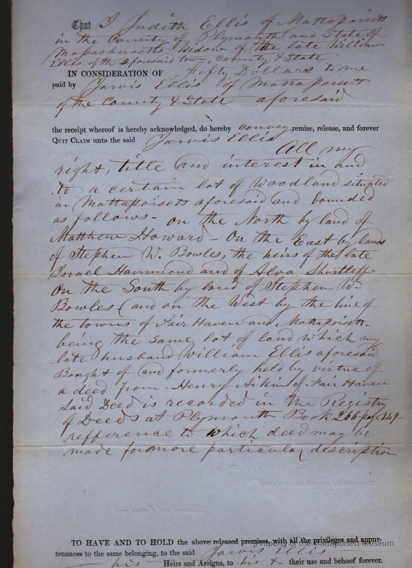 Judith Ellis to Jarvis Ellis, woodland for $50.Collection
