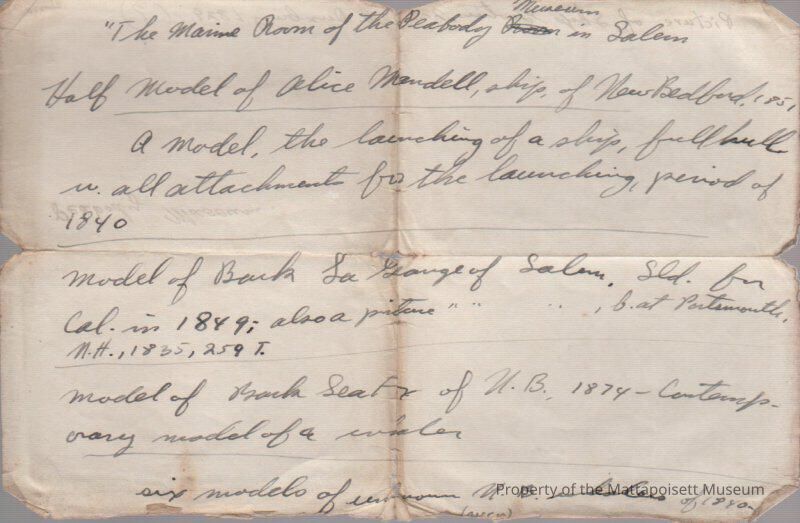 Notes on models in "the Marine Room" at the Peabody Museum in Salem.Collection