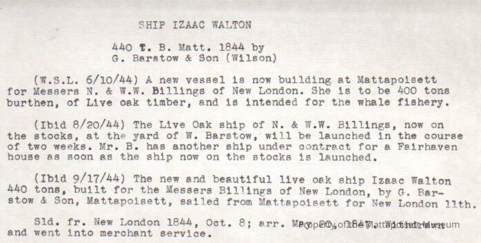 Whalemen's Shipping List articles on Ship "Izaac Walton"