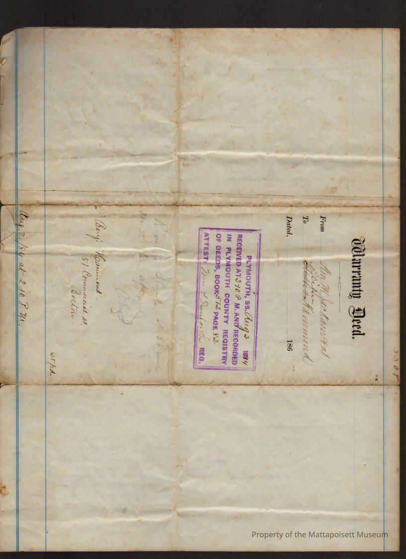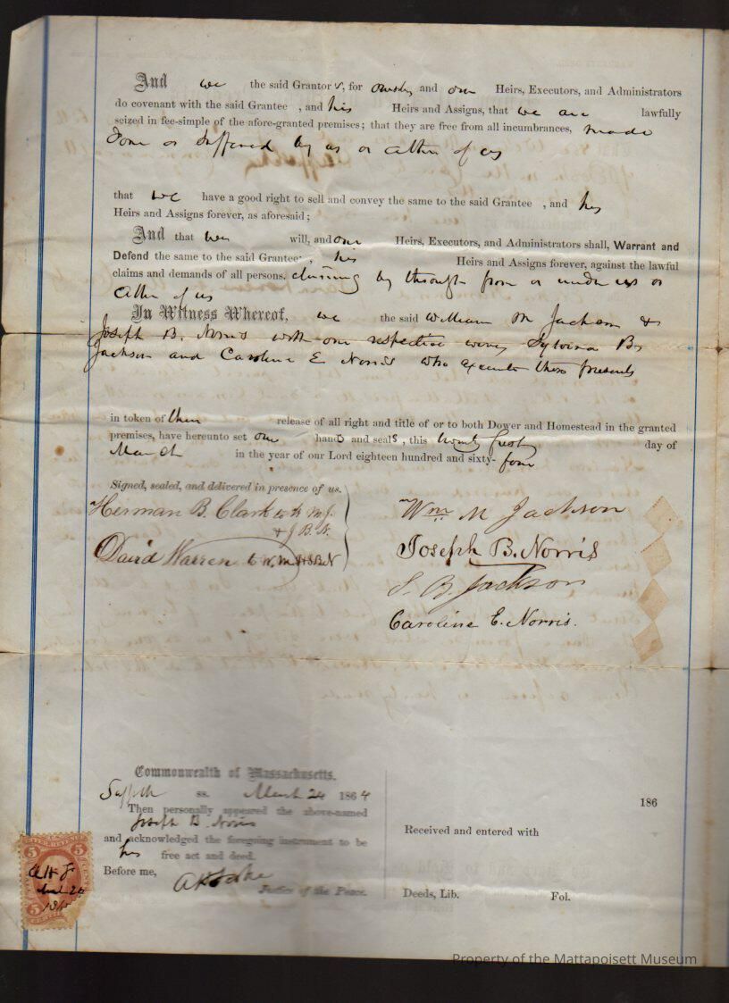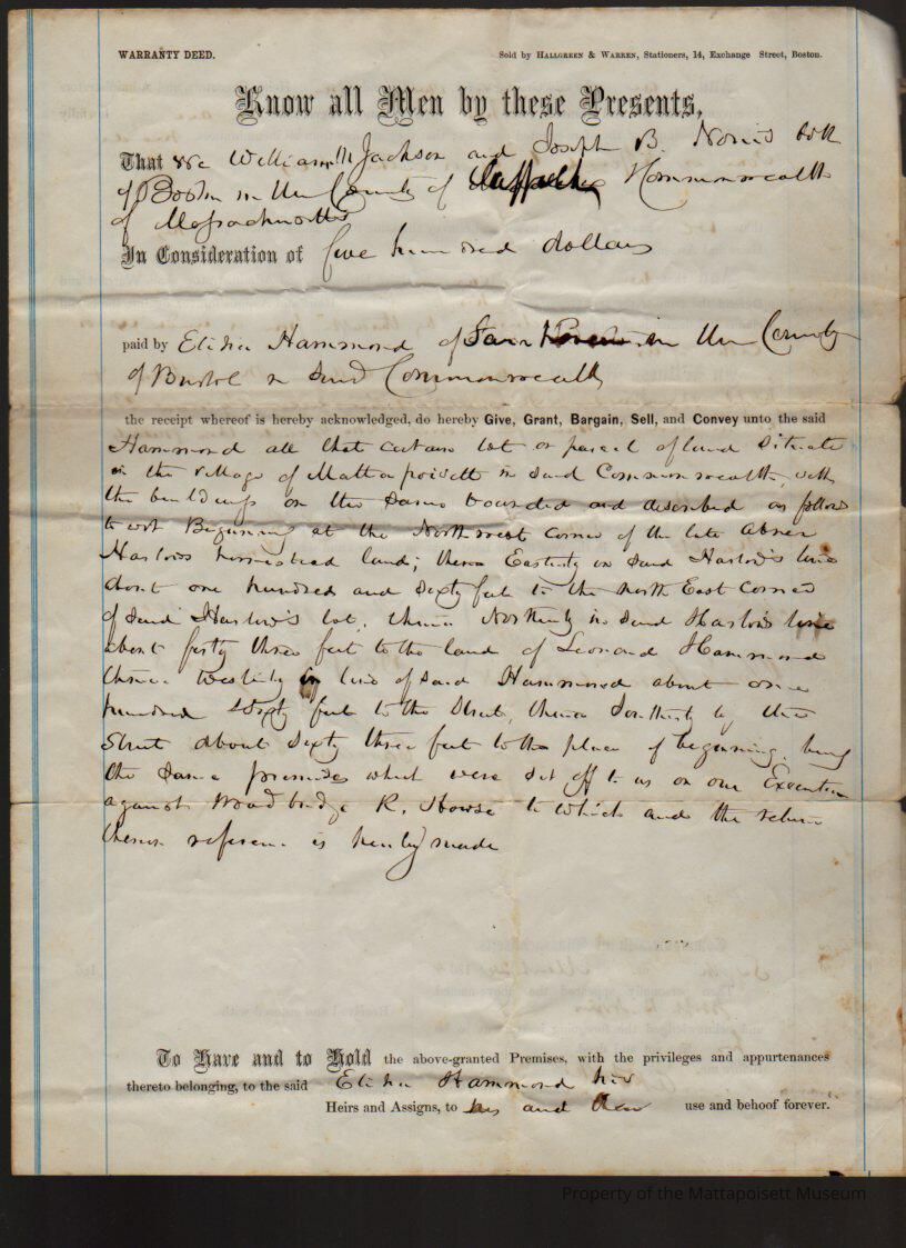 William M. & Sylvania B. Jackson & Joseph B. & Caroline E. Norris, all of Boston, to Elisha Hammond of Fairhaven, land for $500.Collection