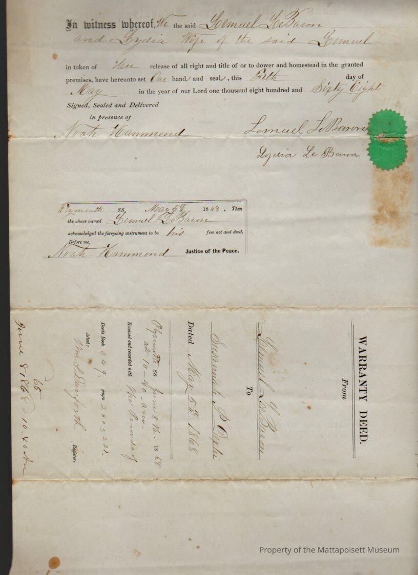 Lemuel & Lydia LeBaron to Susannah P. Dexter, meadow land and dwelling house on 65 rods for $60.Collection