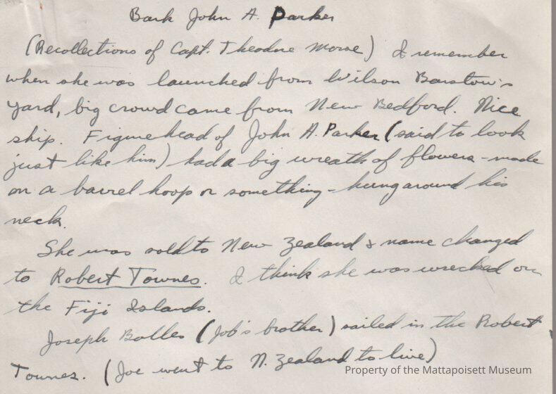 Recollections of Capt. Theodore Morse regarding Bark "John A. Parker"Collection
