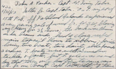 Whalemen's Shipping List article about Bark "John A. Parker" with Capt. W. Loring Taber.