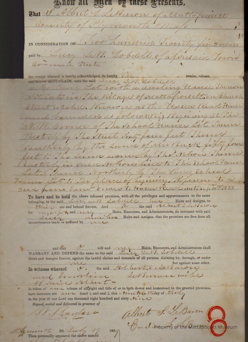 Albert L. & Emaline L. LeBaron to Lucy LeBaron Lobdell, land and dwelling house on Church Street, known as Hosea Road House for $225.Collection