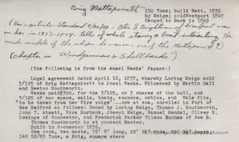 Description and history, articles from Standard (1928) about Brig "Mattapoisett"Collection