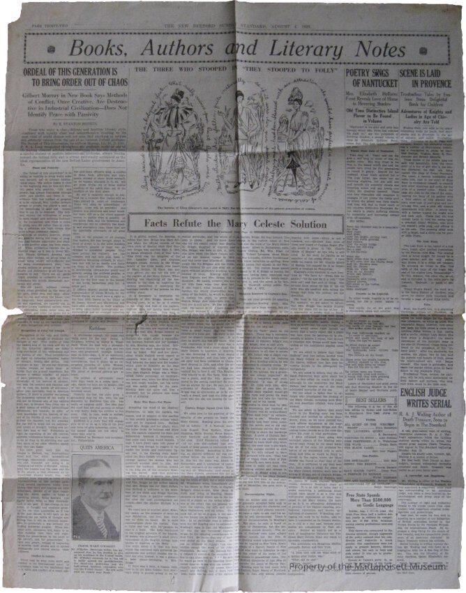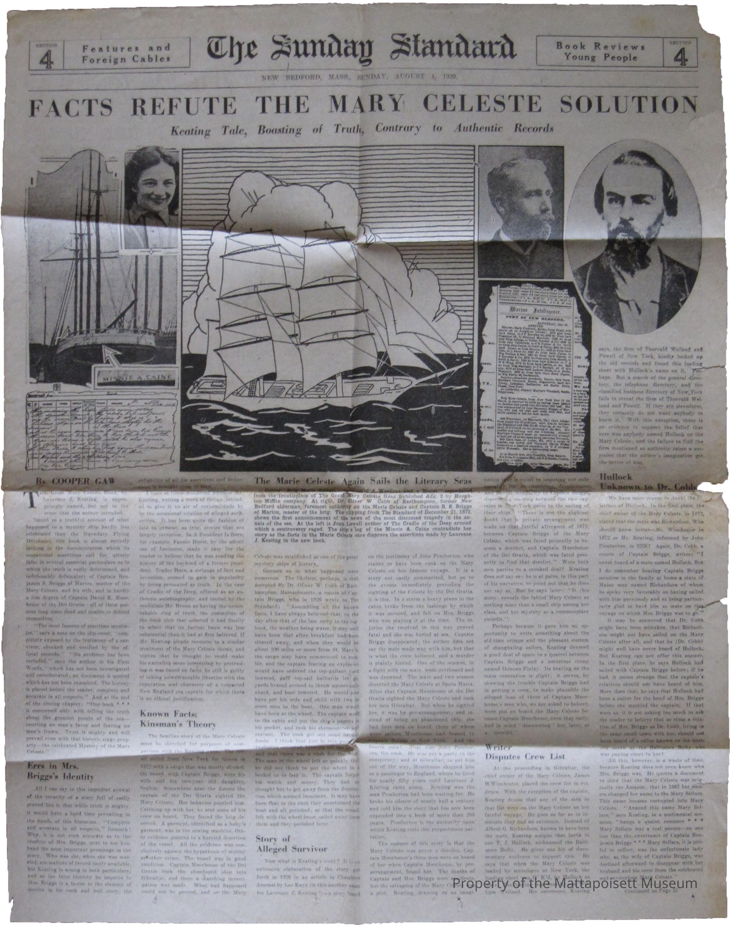 Sunday Standard from Sunday, August 4, 1929: "Facts refute the Mary Celeste solution: Keating tale, boasting of truth, contrary to authentic records".Collection