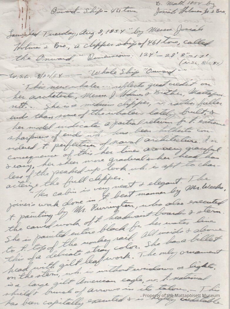 Whalemen's Shipping List article on Ship "Onward". History, description.Collection