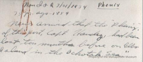 Newspaper article from Nantucket Inquirer loss of "Phenix".Collection